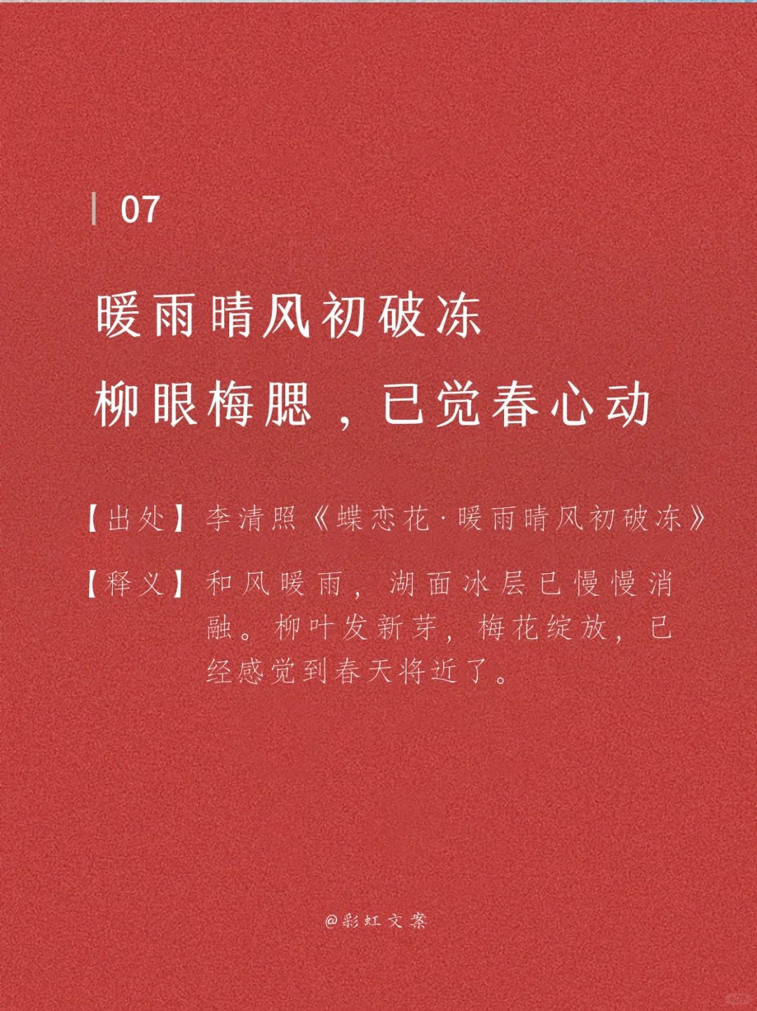 ——李清照《蝶恋花·暖雨晴风初破冻》