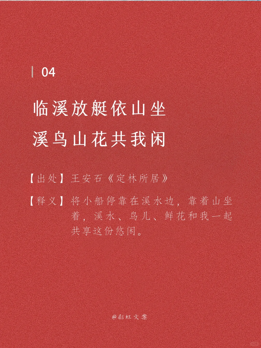 临溪放艇依山坐,溪鸟山花共我闲。