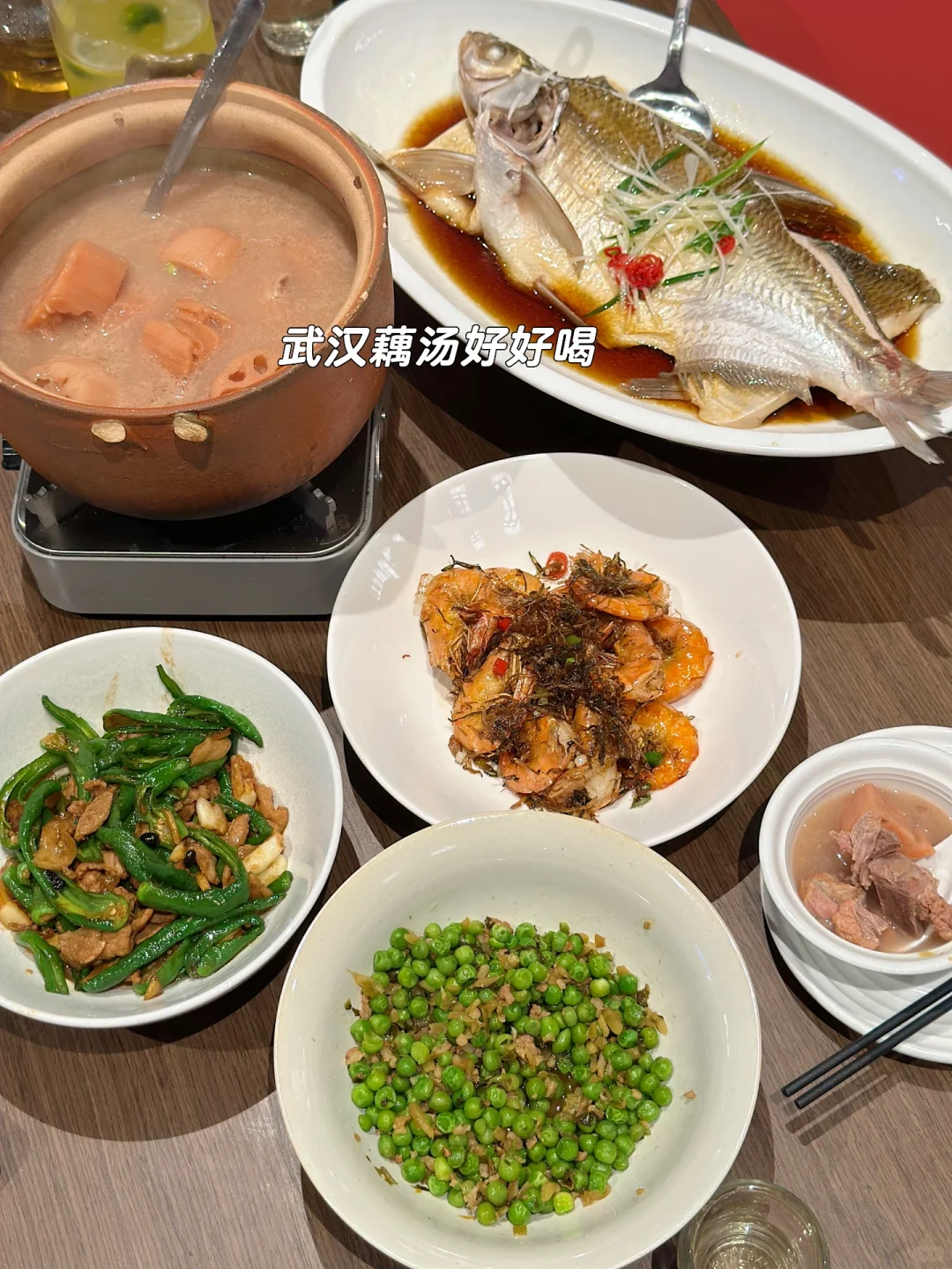 🌟我喝了茶颜悦色。晚饭去步行街里的“大中华酒楼”,吃了藕汤武昌鱼,超好吃!