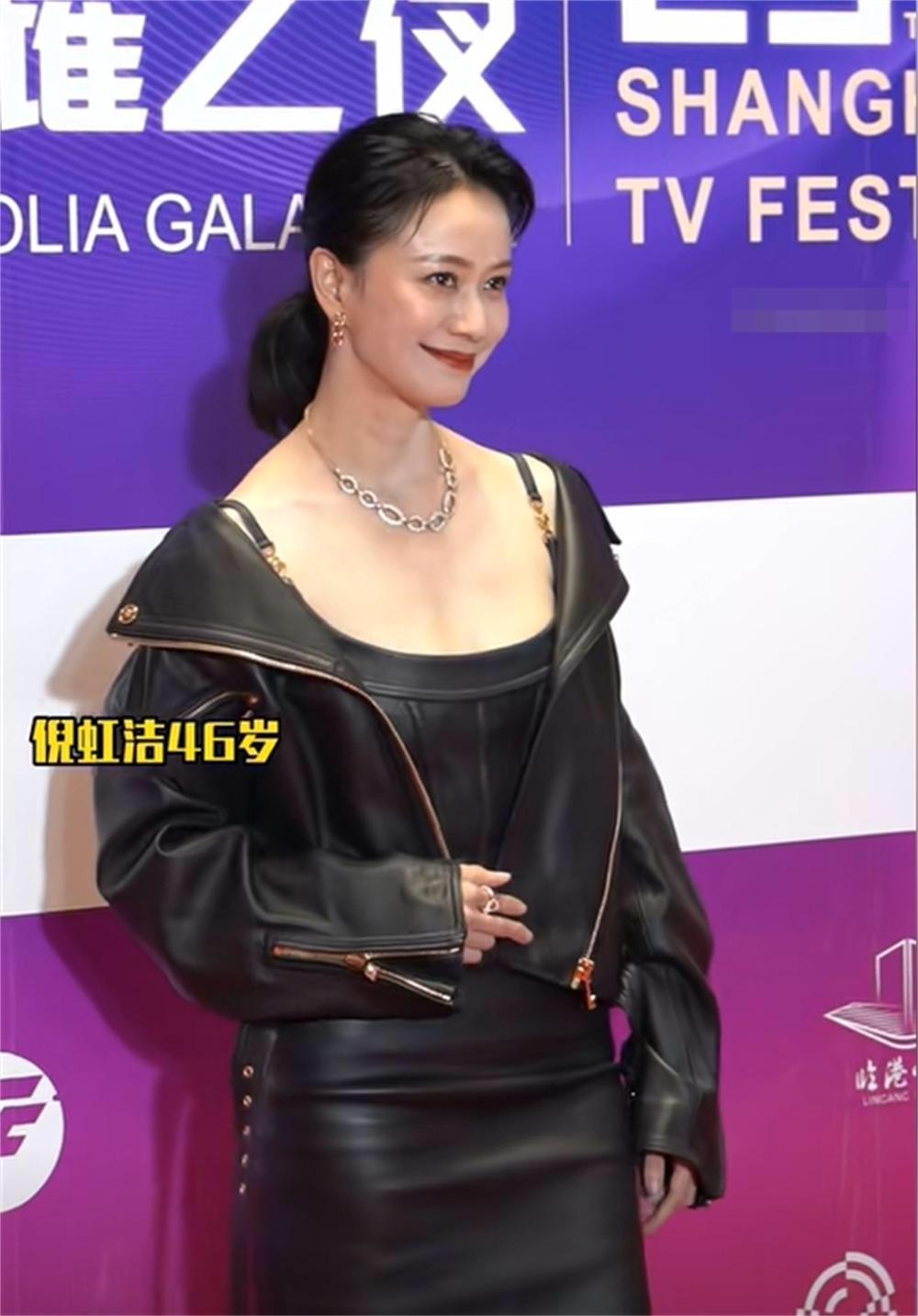 上海这一夜,被包裹严实的倪虹洁惊艳,皮裙皮吊带,甩礼服几条街