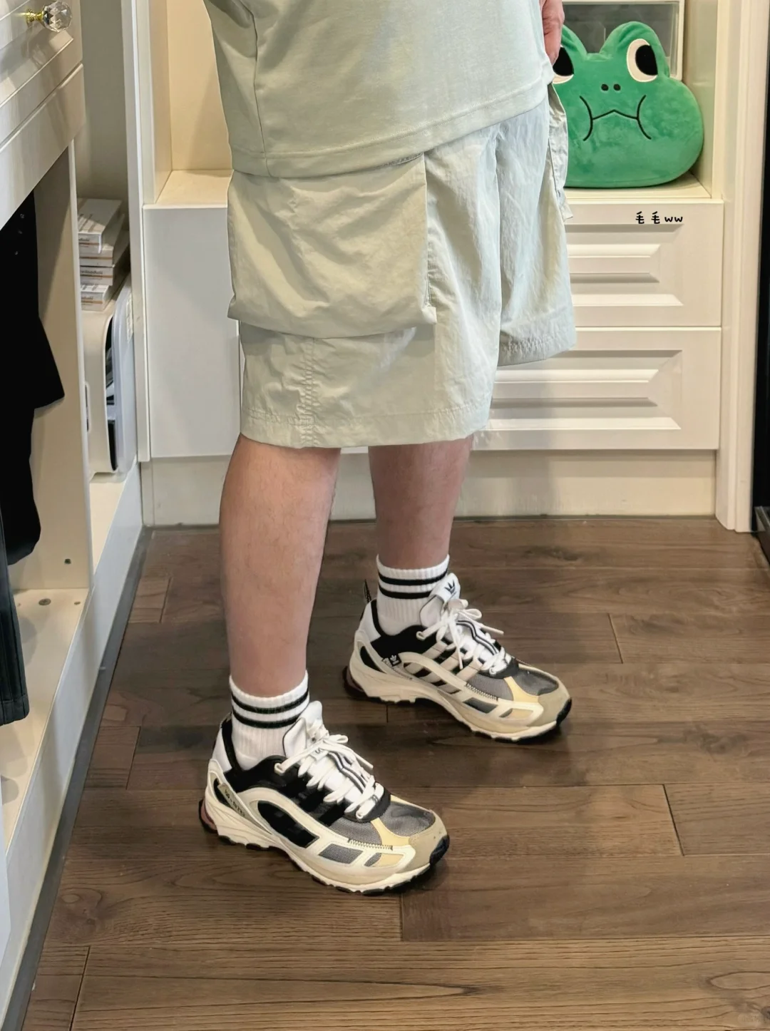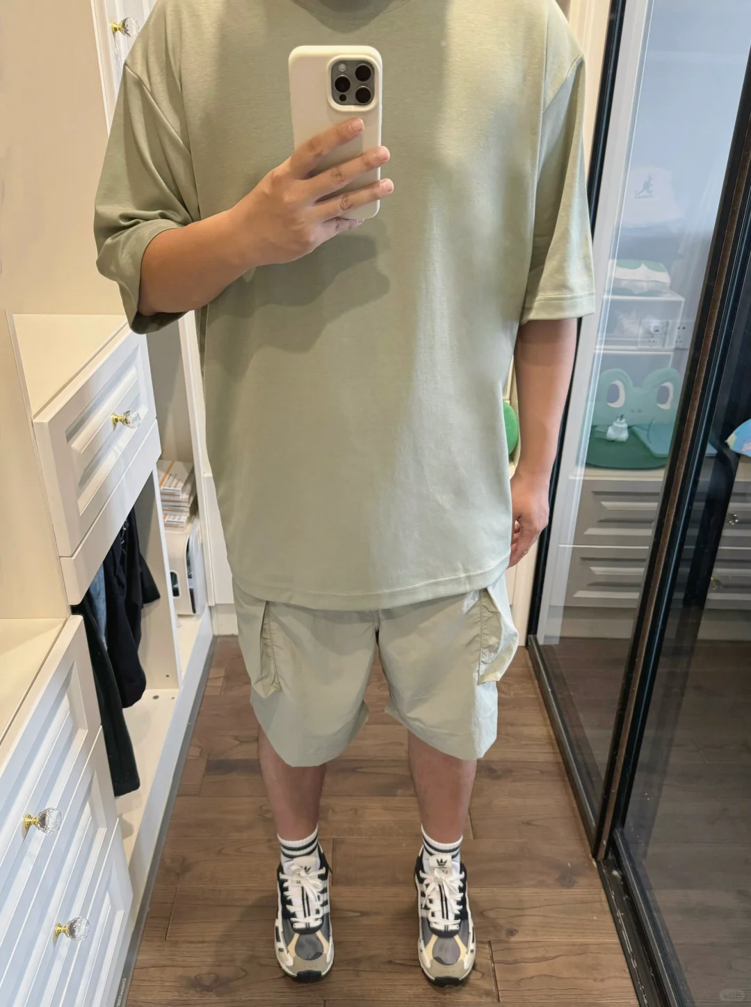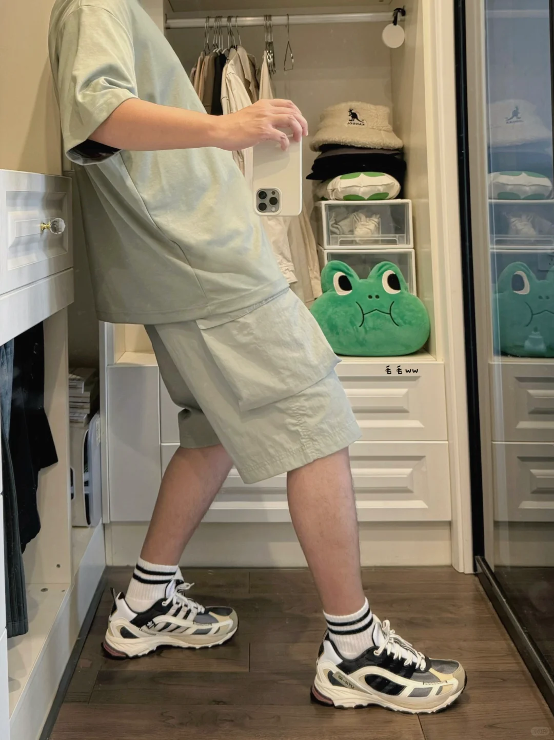 -适合夏季的穿搭,浅色系真的比深色要讨喜 -低饱和度色系,淡淡的,看久了仍然很舒服 -单色体恤、工装短裤,搭配上户外鞋妥妥的 . —————— . ✏️本人178cm75kg 球鞋尺码265mm(正常EU42) . 💭以上均为我个人观点,不喜勿喷,欢迎讨论。