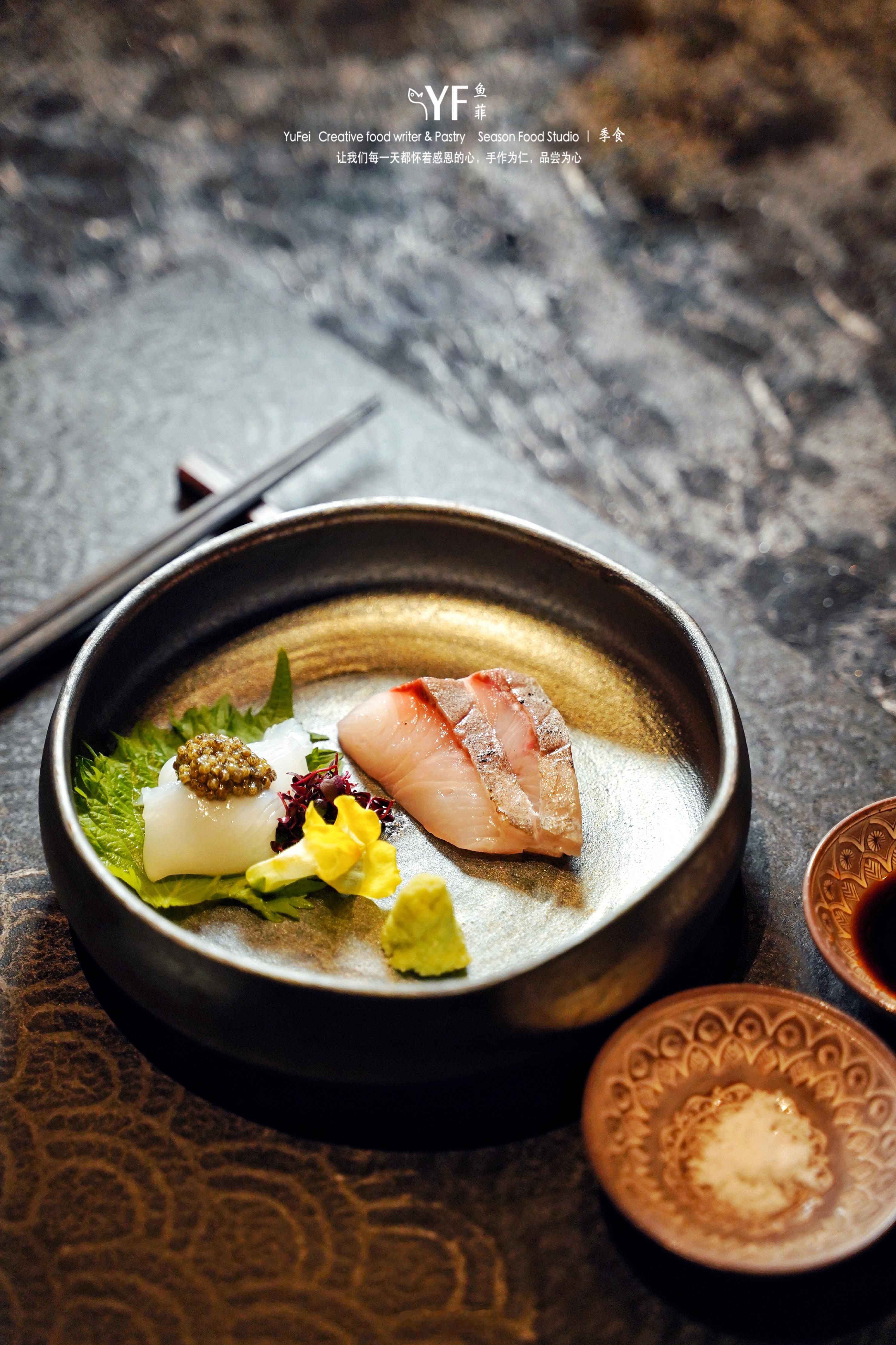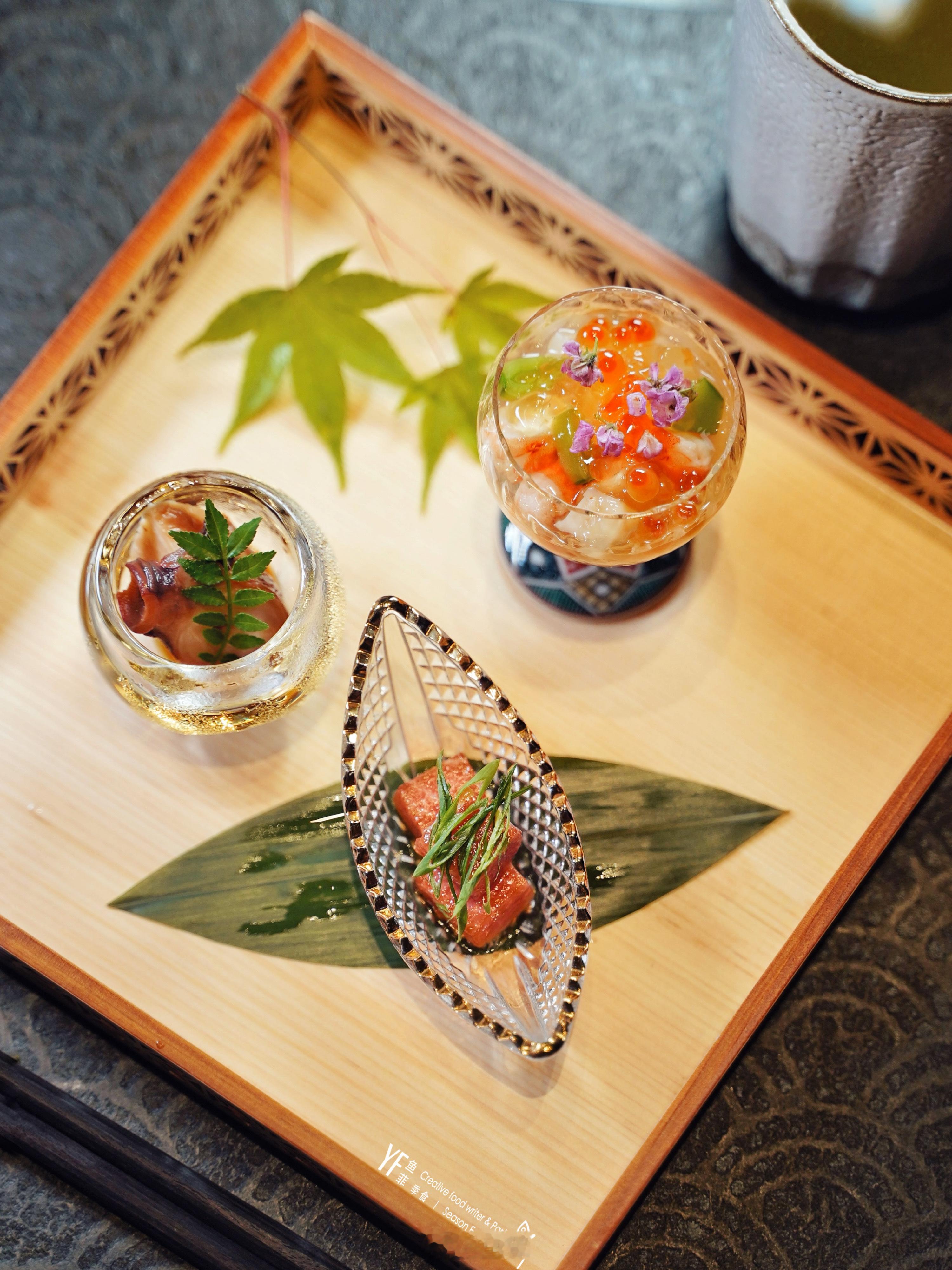 🍱料理中的鱼生,亦是一绝,像车海老帆立贝佐醋啫喱、蓝旗吞拿鱼中腹、搭配现磨的静冈县山葵,糯甜微辣,淡淡的辣度,来如急雨去若骤风,刚好将刺身自有的甜鲜承味。