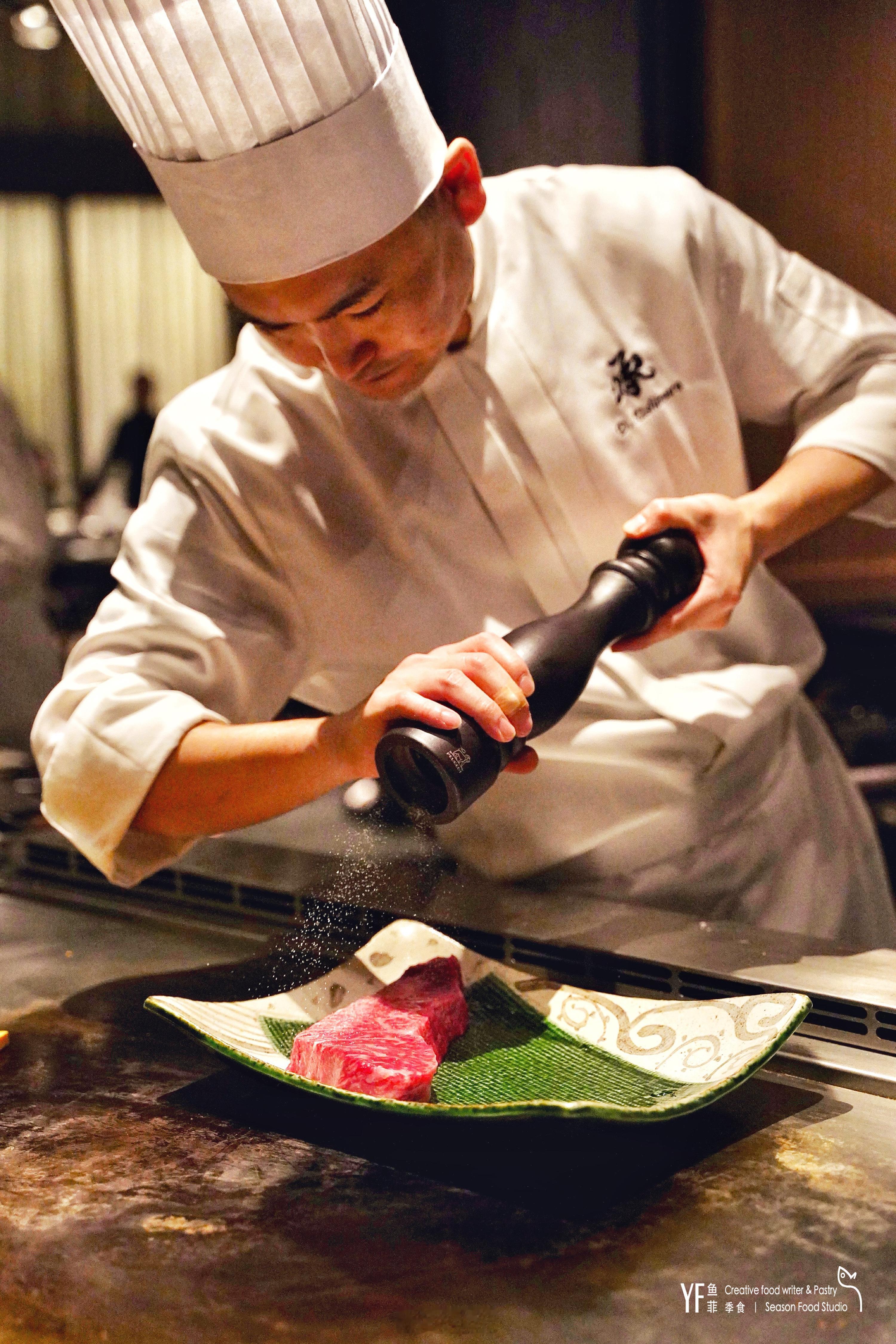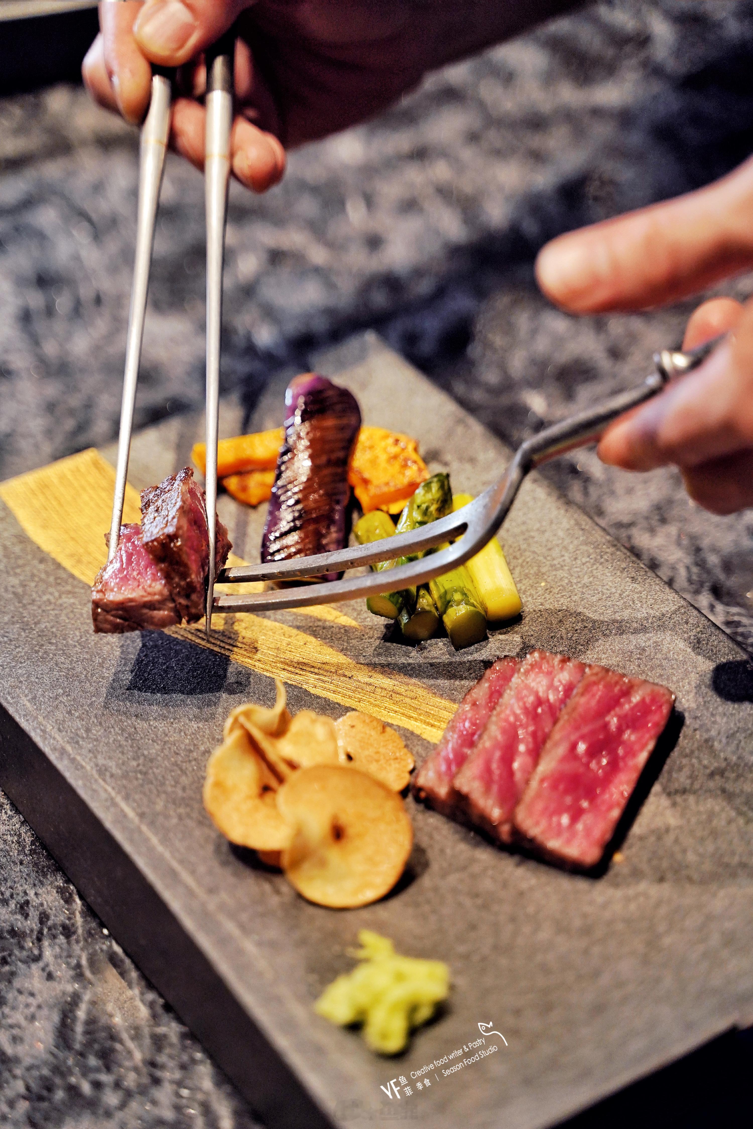 🥩铁板筵席的食材亦讲究,副厨牛村大介介绍专从世界各地严选上乘新鲜食材。像首次尝试的石垣岛特选北内牛,只选母牛,以鲜草海盐喂养,肉味会更香浓鲜甜,韵味和脂香也更加悠长。铁板高温瞬间软化脂肪激发雪花肉质,用柚子醋和透着浓郁酒香的味噌蘸食,柔嫩醇香,滋味独特。