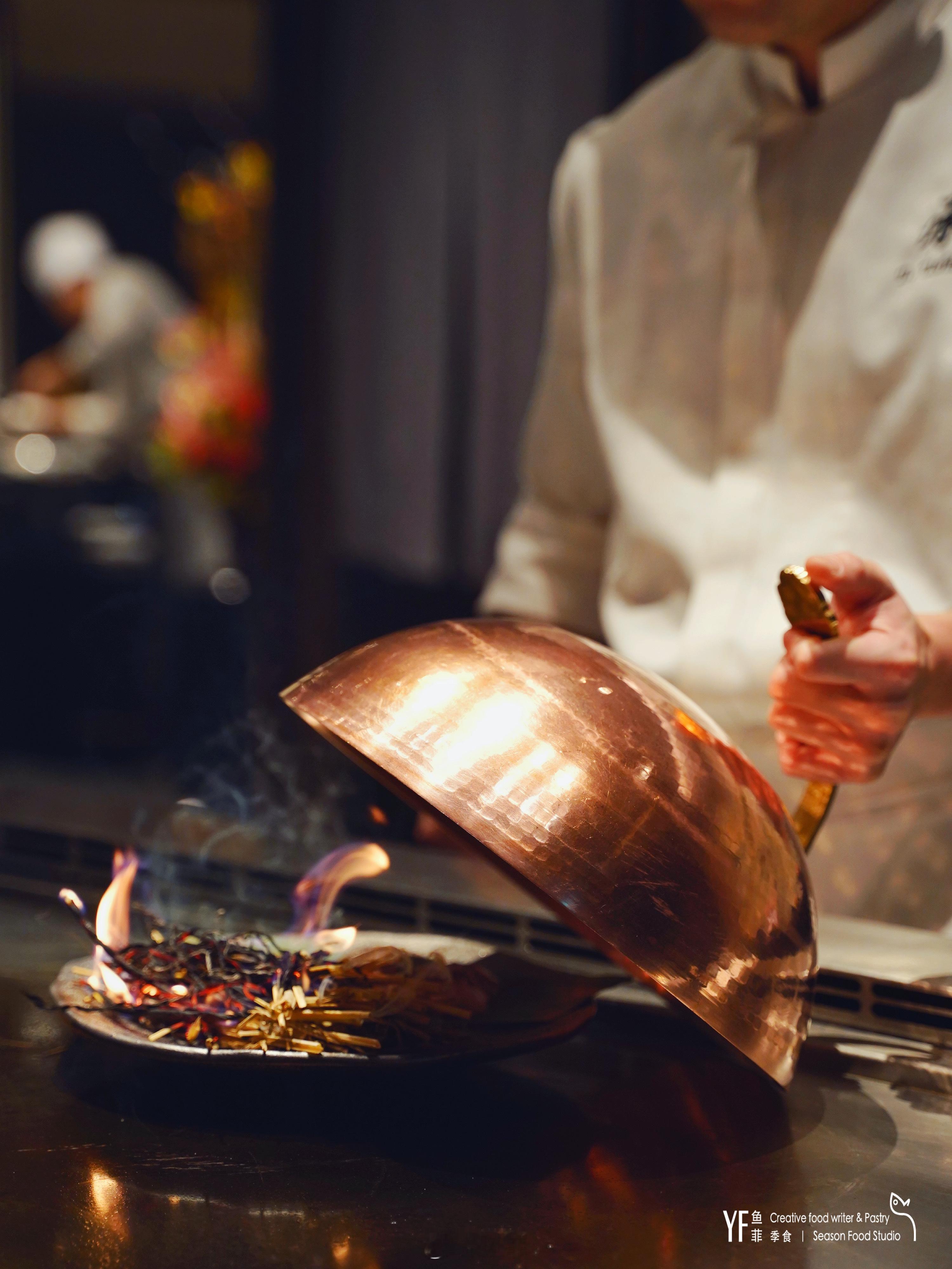 🍃这次试了一家新晋的食肆“承 · 铁板料理”,以现代简约风格承饰,和风食材承味。无论是门口线条笔翰如流的藤编悬空装饰,还是置于案几前的草月流花艺,都给人一种欣赏尊重自然演变的平和。与副厨牛村大介零距离的铁板餐飨体验,灵活的手腕时而轻巧翻炒,时而烟火氤氲,将整张菜单料理成了一场“歌剧院大秀”,就连研磨黑胡椒的一瞬,都让人痴迷于他在料理台上的行云流水。