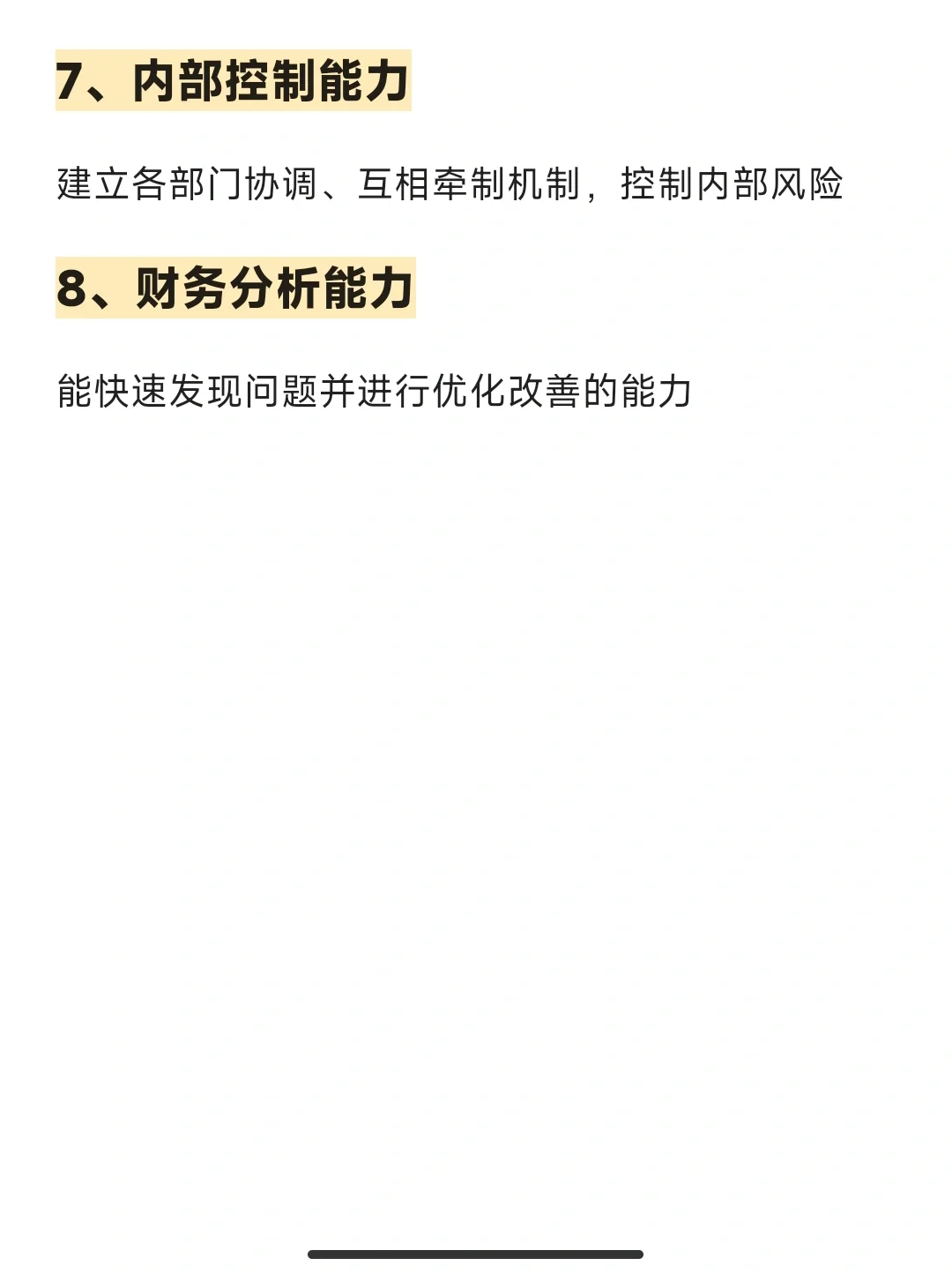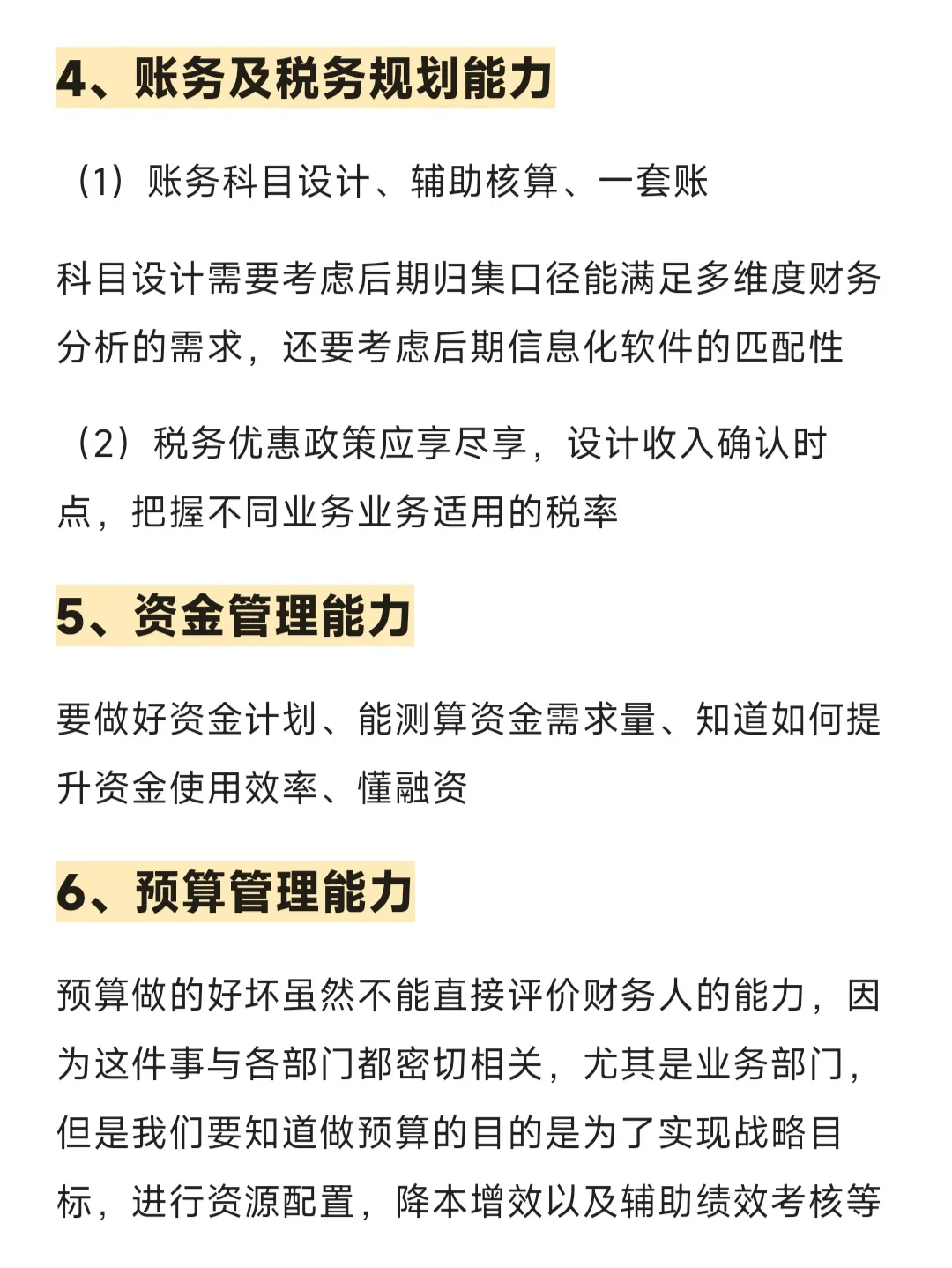 他/她会成长得非常快 👉但是学习需要有方向 ‼️那做财务想要不断提升自己成为财务经理,需要具备哪些能力呢? ✅沟通协调能力 ✅团队建设能力 ✅起草制度的能力 ✅账务及税务规划能力 ✅资金管理能力 ✅预算管理能力 ✅内部控制能力 ✅财务分析能力