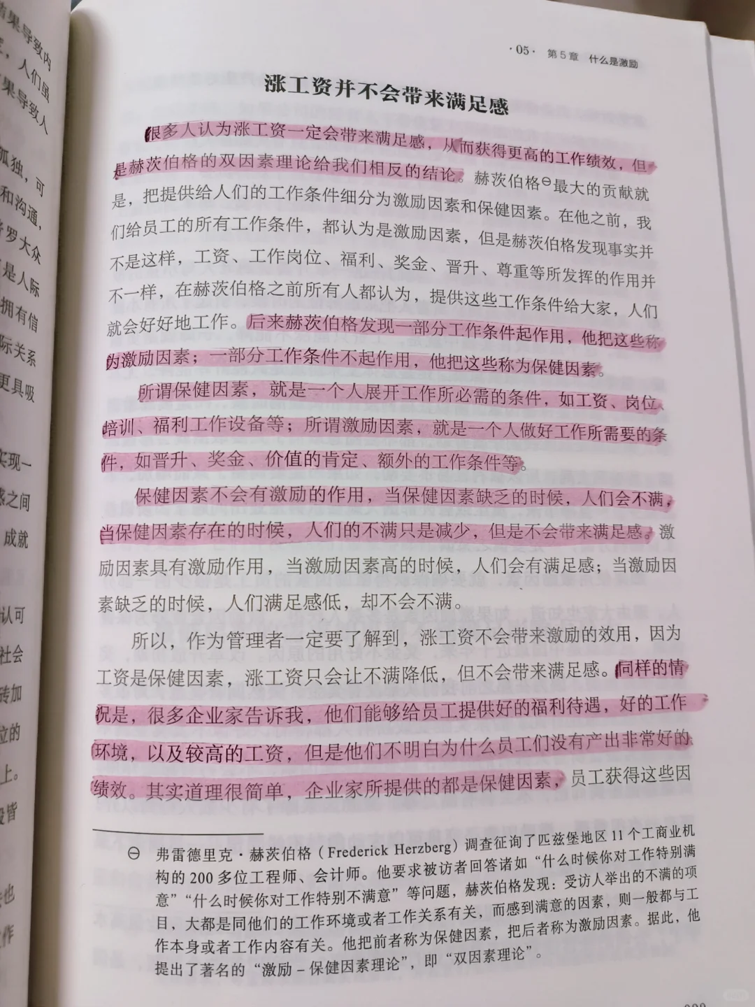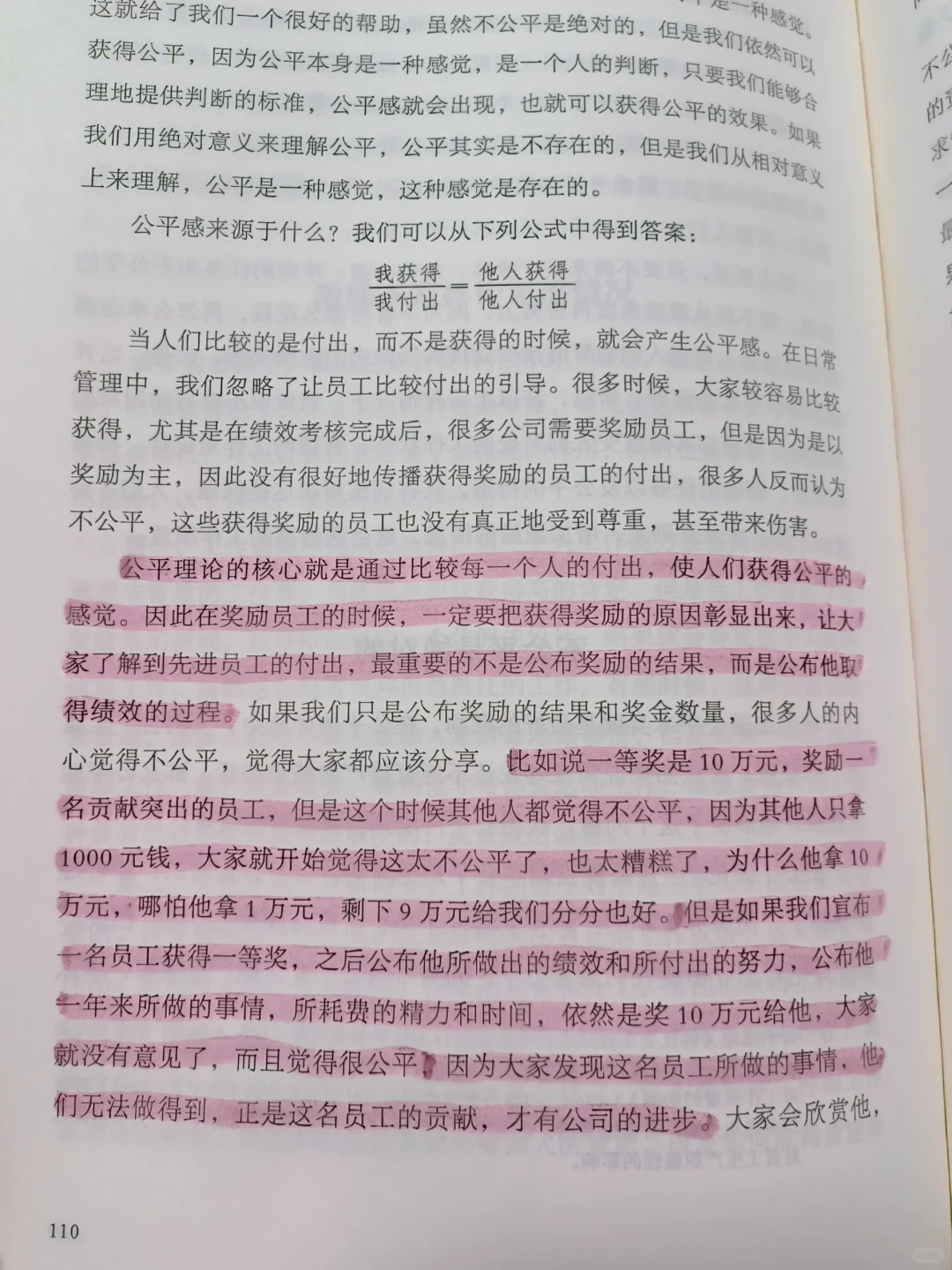 个人觉得这本书里的管理方法非常值得学习 🌻“工资是保健因素”🌻 保健因素不会有激励作用,当保健因素缺乏的时候,就会造成不满。 . 🌻“做薪酬设计不能只关注同业水平”🌻 还要关注自己企业的经营规模和经营水平,否则不仅害了员工,也害了企业。 . 🌻“公平感是一种感觉,但是我们要提供判断的标准”🌻 在奖励员工的时候,必须要把奖励的原因也彰显出来。 . 🌻“决策是为了能够执行”🌻 判断一个企业的决策对或错的时候,并不是看这个决策本身,而是看这个决策最后能否获得执行并得到决策的效果。