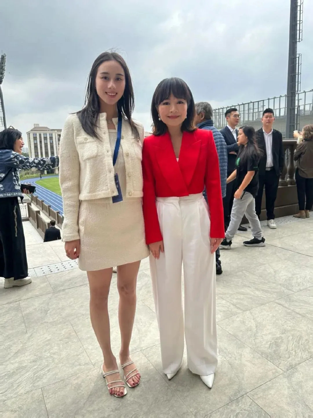 张天爱跟素人合影,胯真的好宽,大宅院似的