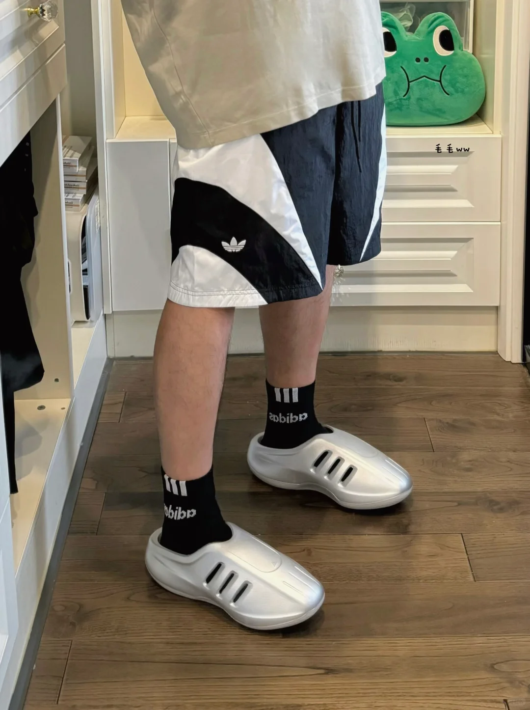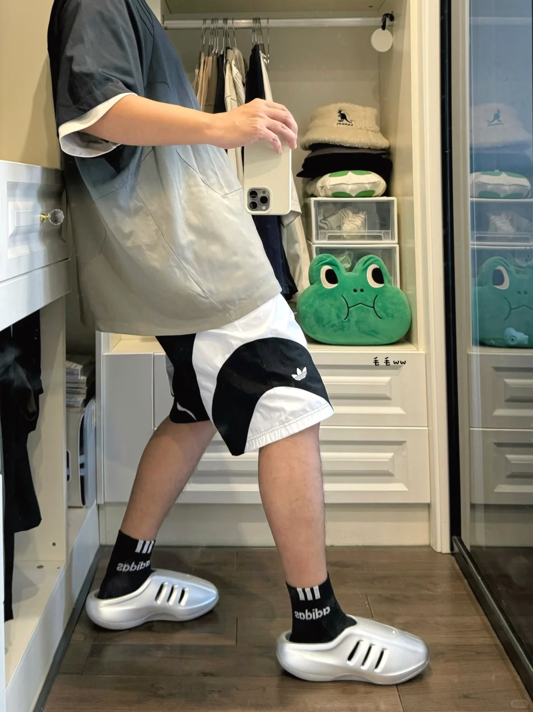 黑色短裤搭穆勒拖,百搭又时尚!我178cm75kg,穿265mm鞋,效果不错