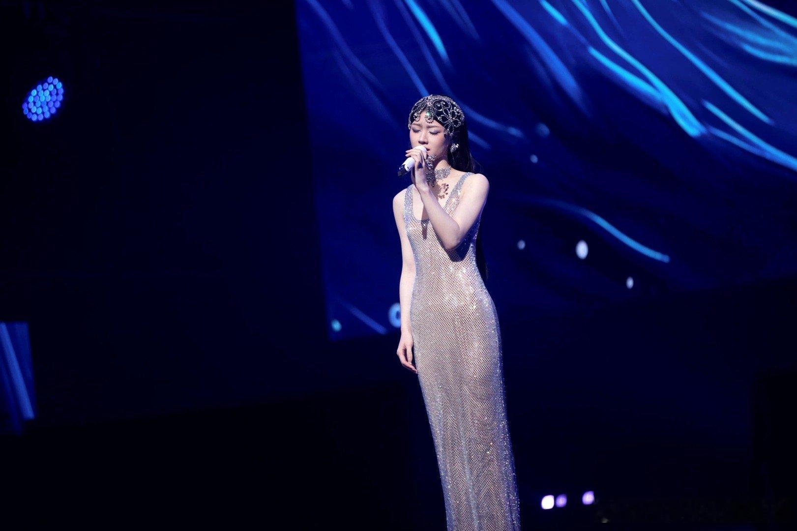 #单依纯浑身都是钻# 昨晚的舞台,单依纯仿佛踏月而来,一袭星河点缀的长裙,每一步都闪耀着梦想的光芒。#单依纯白色晶钻鱼尾裙#