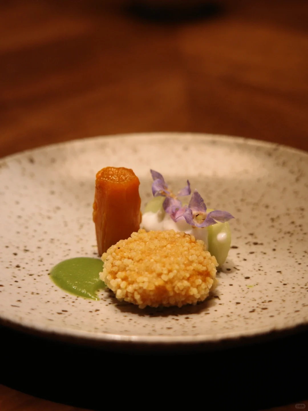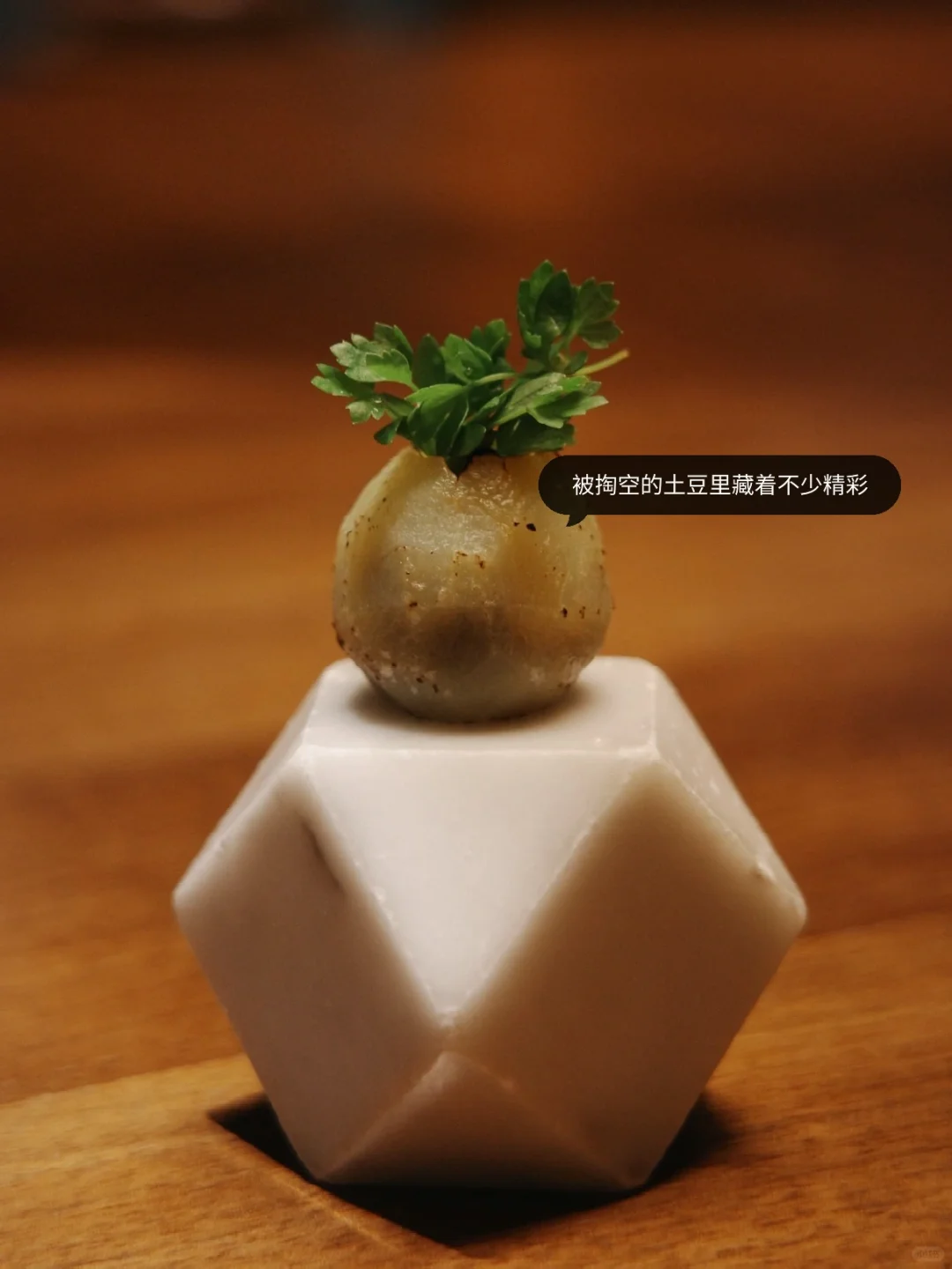福和慧以及马场主厨的限时素食,在我心中有不可撼动的地位,这次又多了一家,它藏在良壤酒店中。陈主厨是位很可爱的i人,边介绍菜品边慢慢向后挪步,我一直觉得厉害的人是不擅长耍嘴皮子的,他会把所有心思都花在制作菜品上。