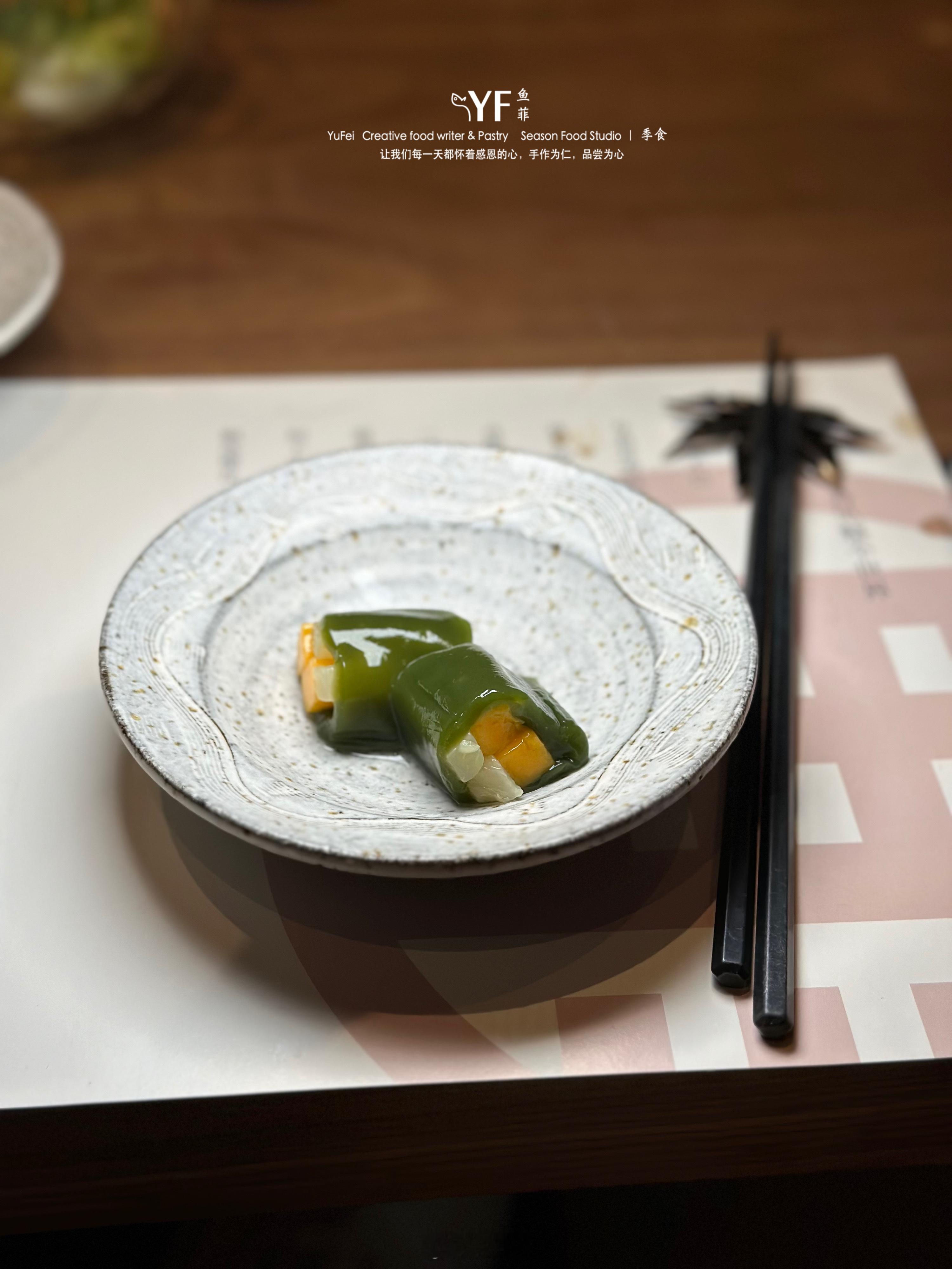 收口的霜淇淋果配渍水果、抹茶蕨饼卷水果,滋味轻盈,低甜度的调味,解腻又清新。
