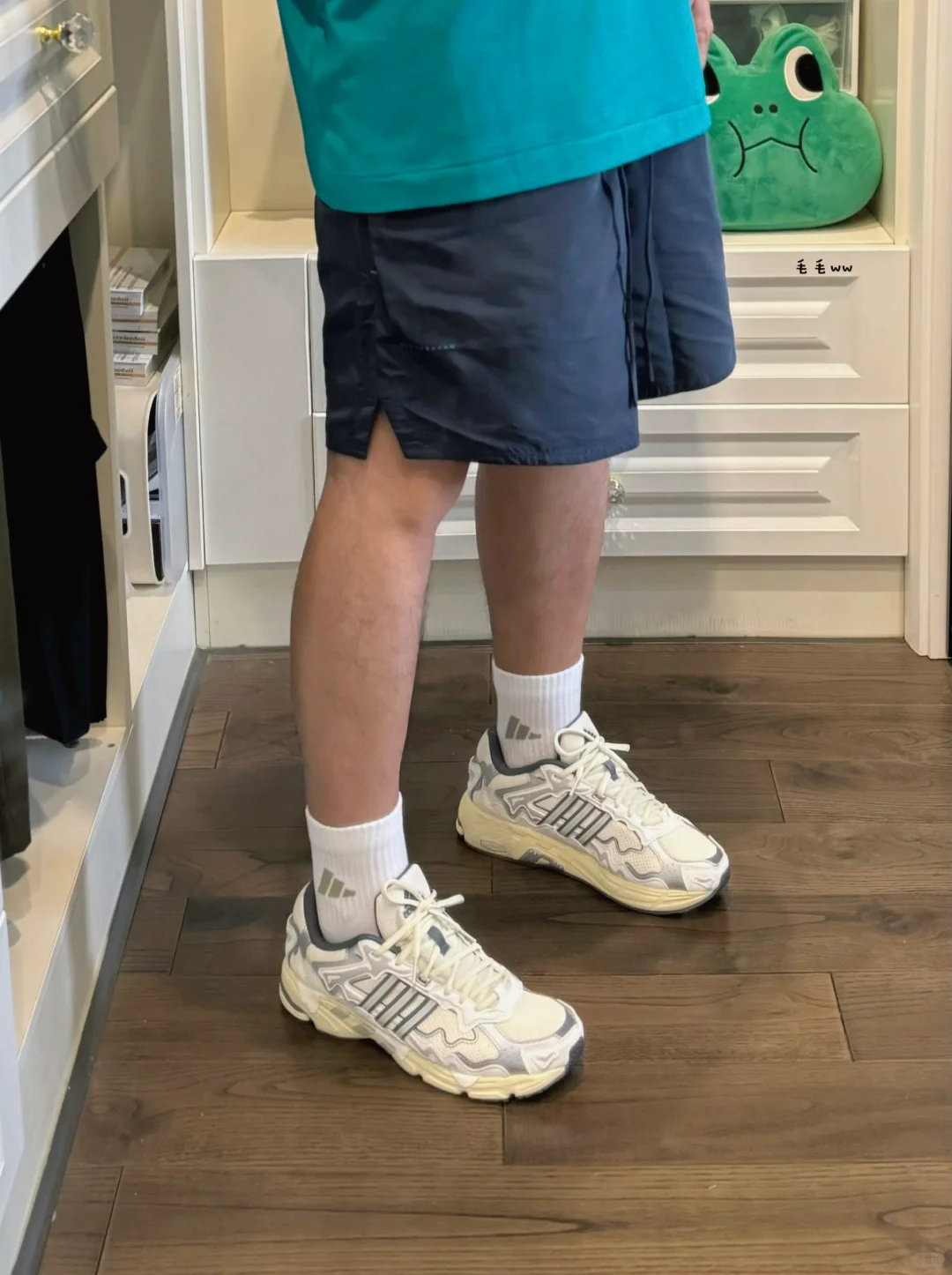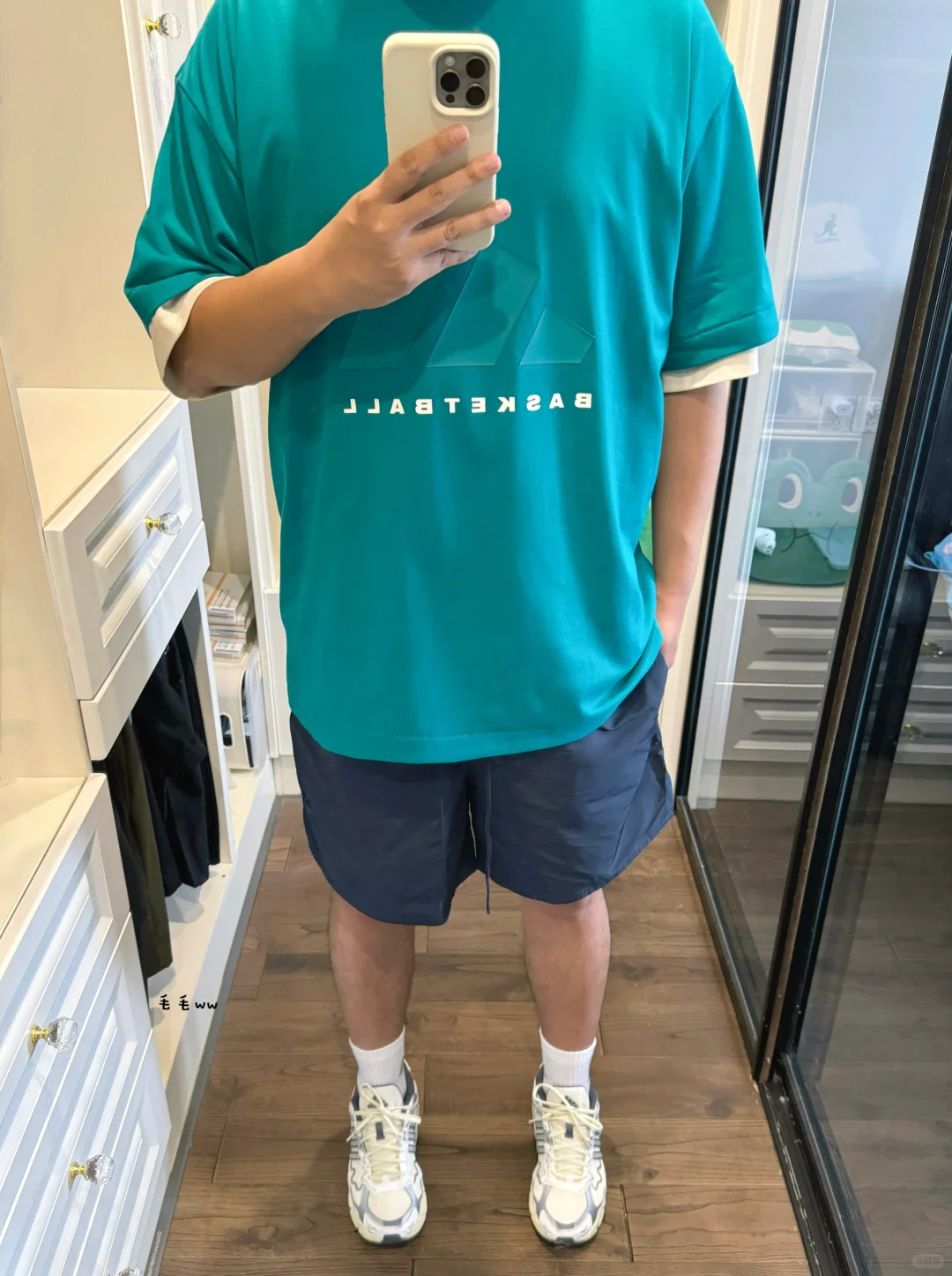-本季新增的青绿色,容易联想到EQT系列,千禧年喜欢运用的复古色系 . -尼龙短裤区别于之前的棉质,更轻薄透气的材质,同教练夹克跟排扣长裤 . —————— . ✏️本人178cm75kg 球鞋尺码265mm(正常EU42) . 💭以上均为我个人观点,不喜勿喷,欢迎讨论。