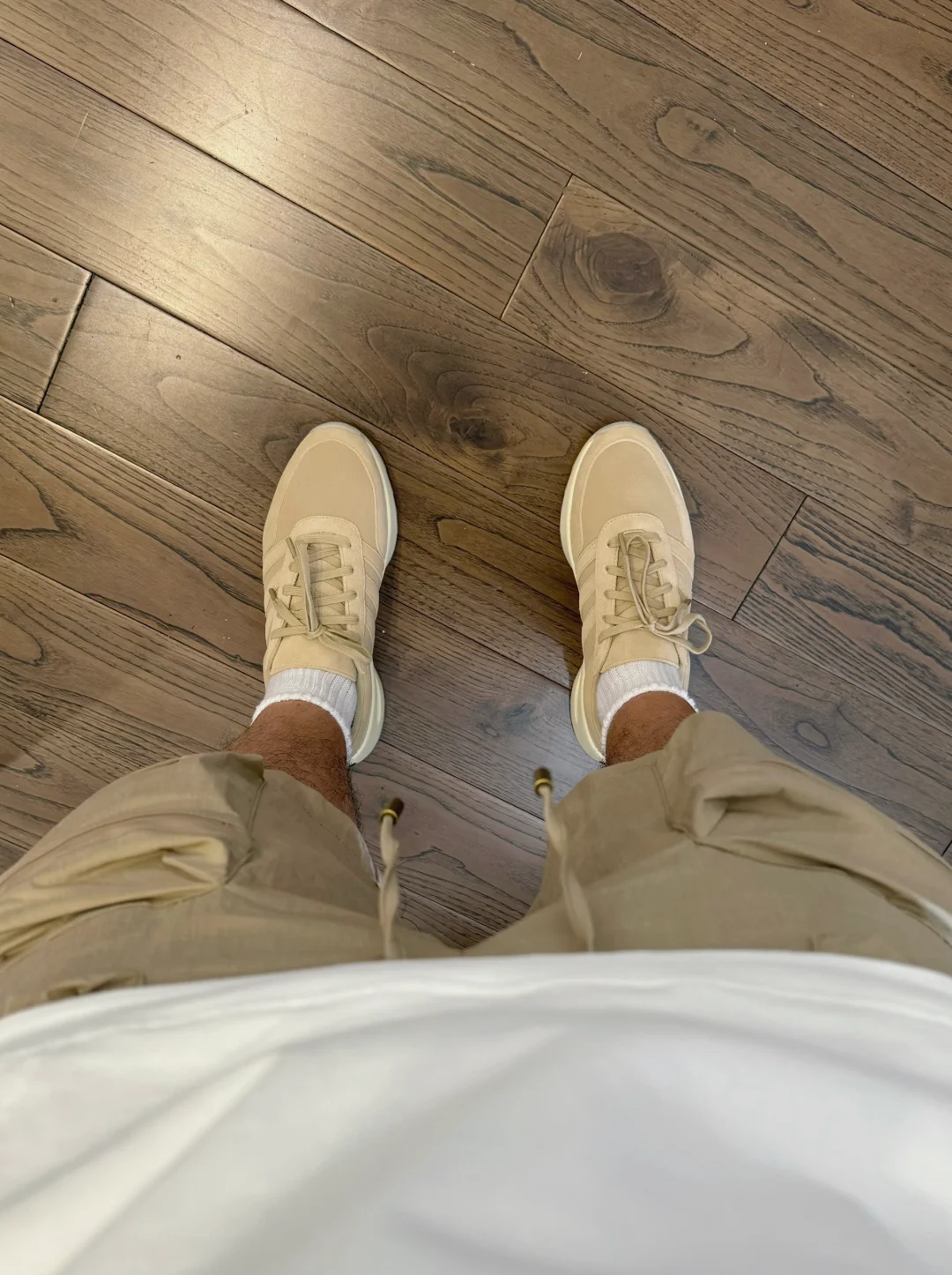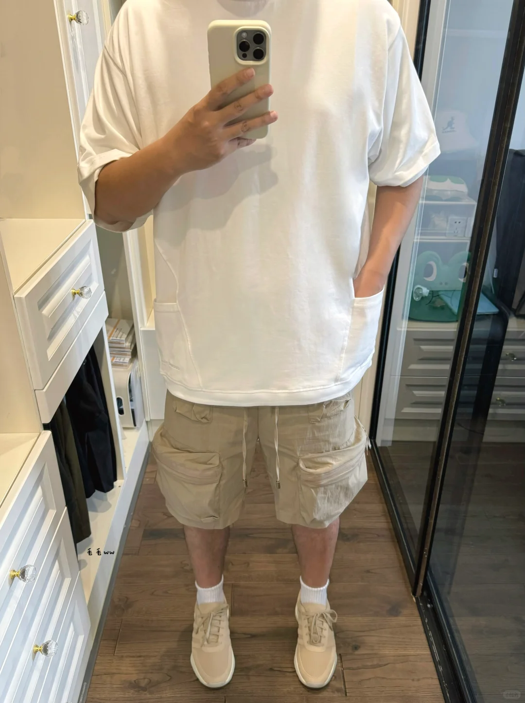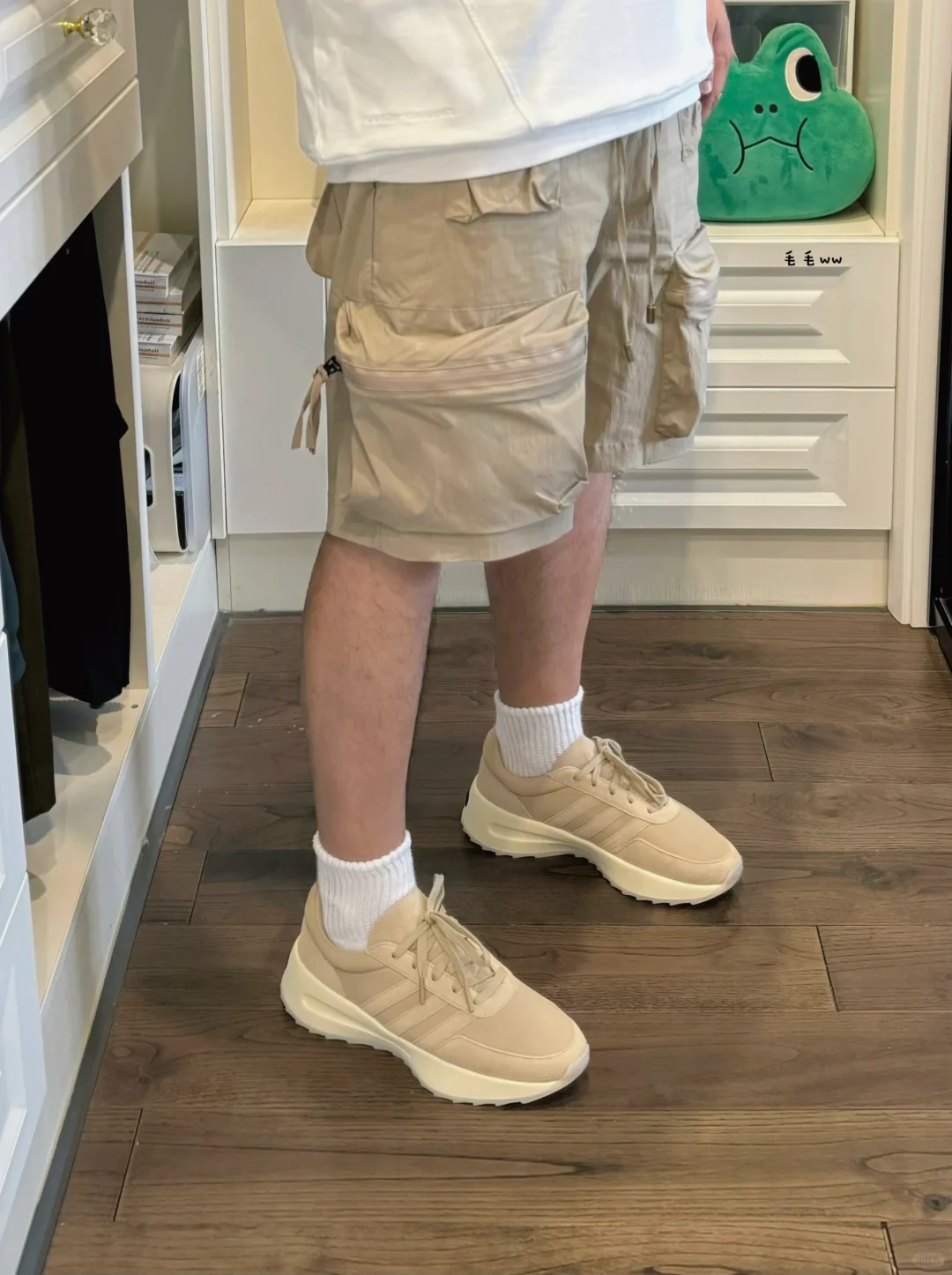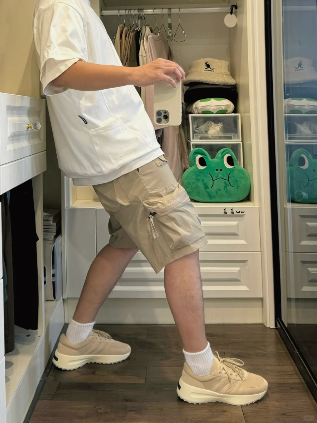 -很难拒绝卡其色穿搭,风格上使人硬朗,实穿来说很耐脏,低饱和度色系,视觉淡淡的也舒服 . -搭配思路很简单,白Tee白袜,球鞋呼应裤装;想要辨识度就选工装短裤,想要低调就搭卫裤 . —————— . ✏️本人178cm75kg 球鞋尺码265mm(正常EU42) . 💭以上均为我个人观点,不喜勿喷,欢迎讨论。