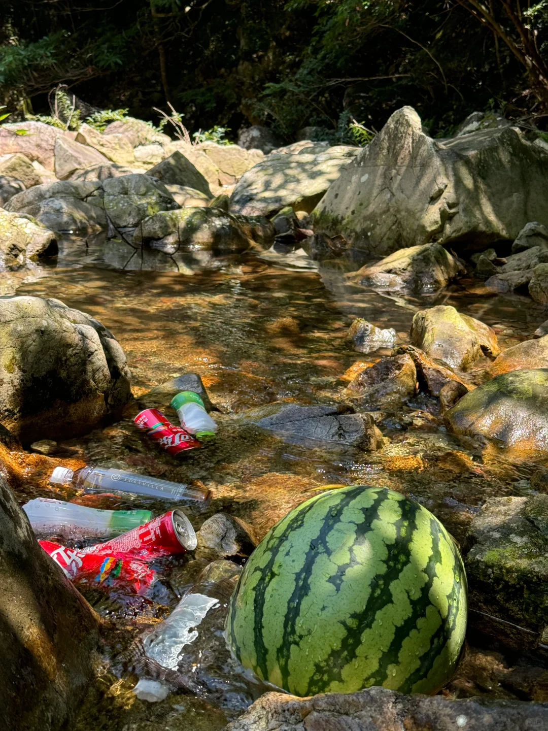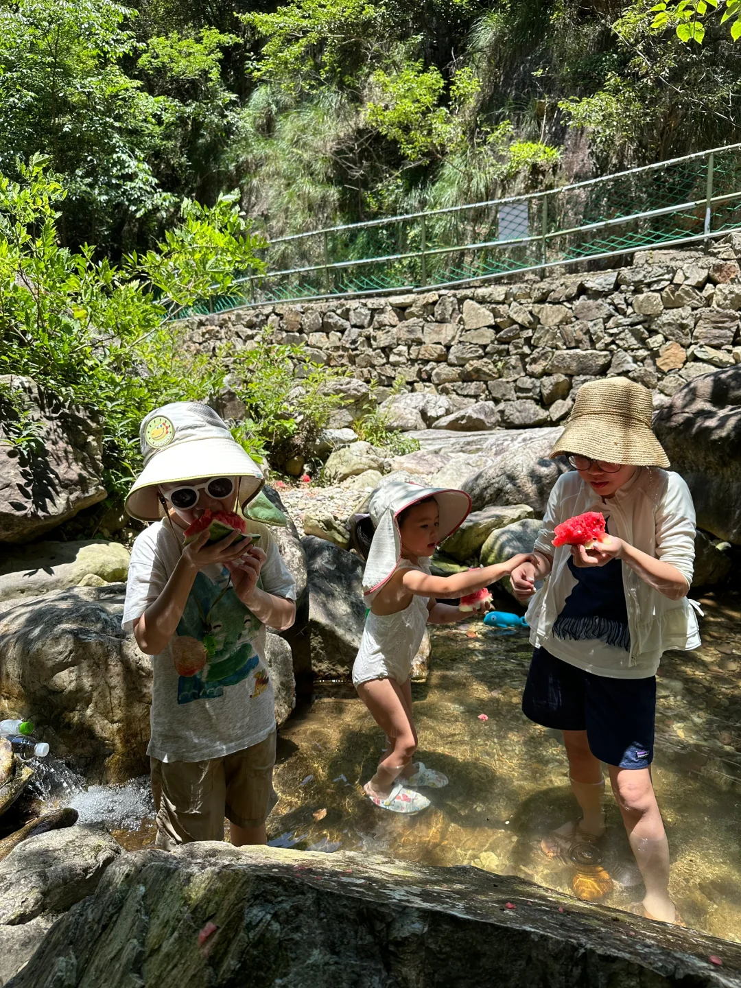 哇哦,这西瓜吃得,简直是大自然的馈赠,孩子们的快乐源泉!溯溪探险,不只是为了吃,更是童趣与自然的完美碰撞~