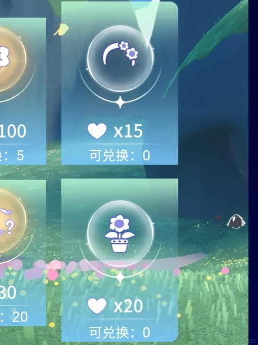 第四栏可以换返场的向日葵背饰20❤和向日葵发箍20❤所以,今年那俩能换就换,不然就要你爱心或者蜡烛换了