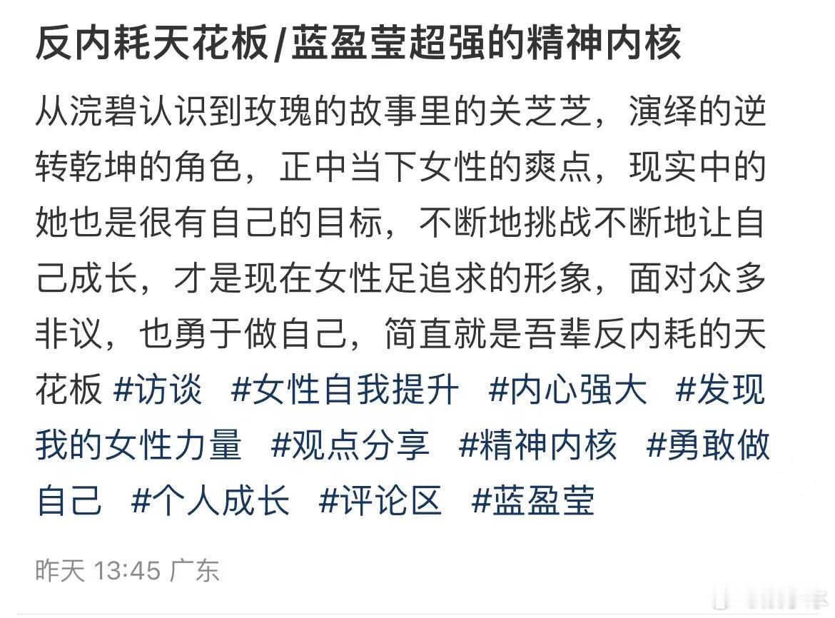 #蓝盈莹精神内核# 看了这段采访之后真的很好的能够让我们感受到蓝盈莹身上强大的内核,蓝盈莹一直以来都是一个努力的人,也是一个勇敢去追求梦想的人