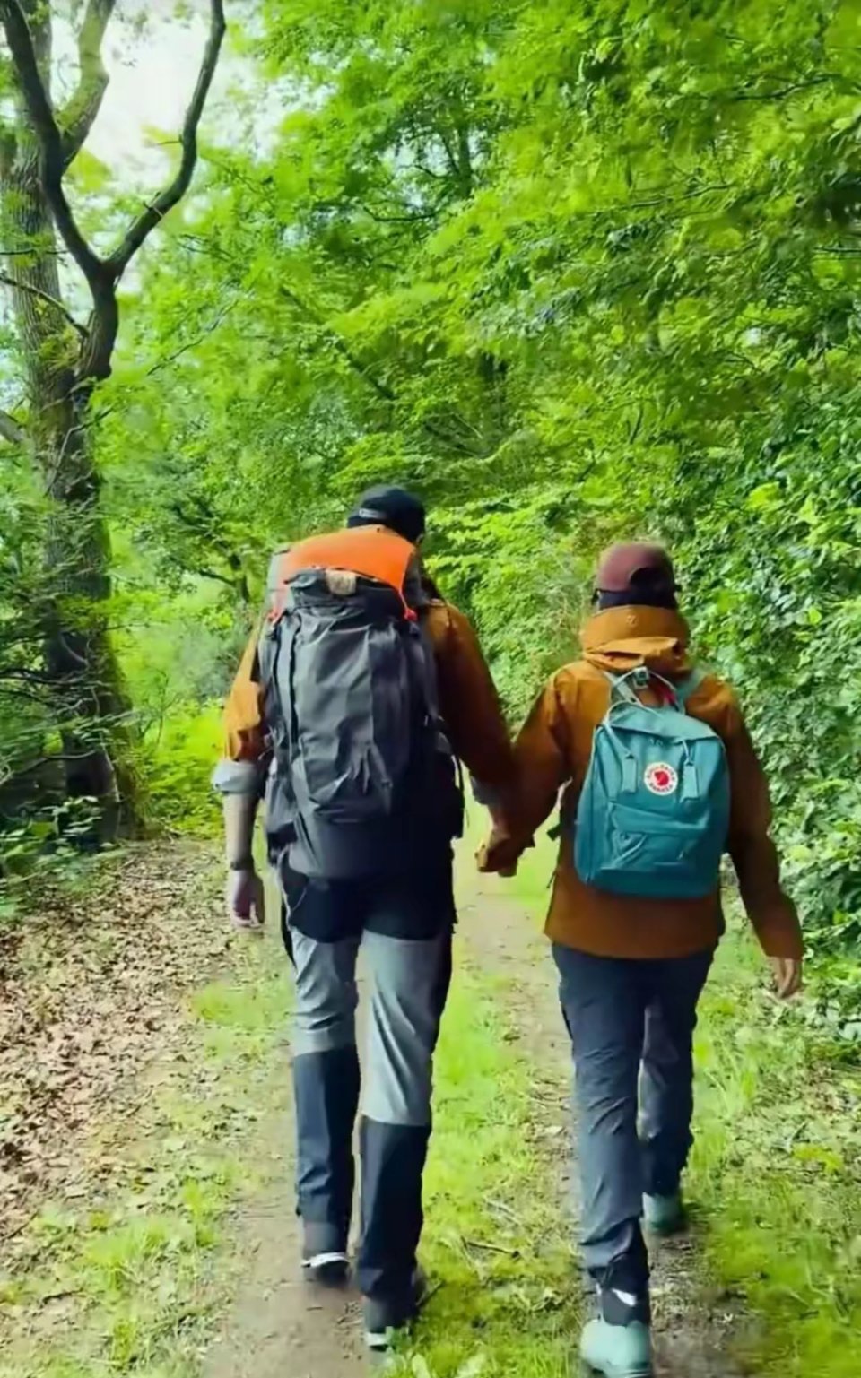 朱丹晒丹麦旅游徒步美照,和老公周一围穿情侣装手牵手好浪漫