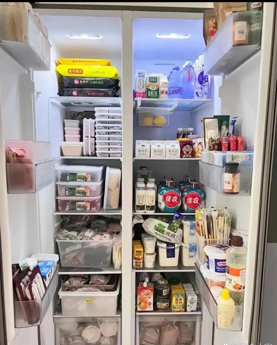 果然父母的冰箱塞的都是绿色健康食品,而右边的冰箱都是科技与狠活