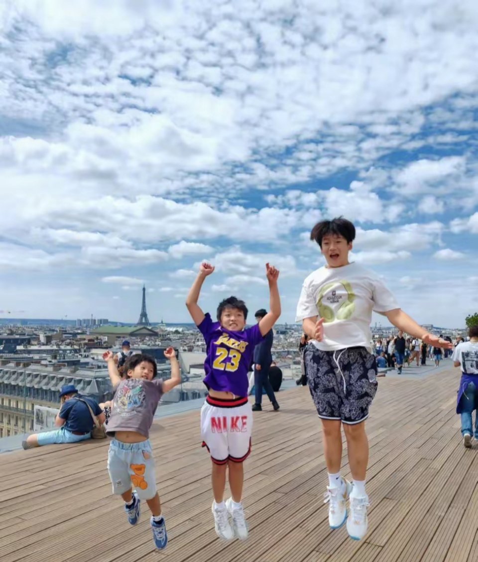 邹市明一家现身巴黎奥运会,一家五口非常吸睛,轩轩都比爸爸高了