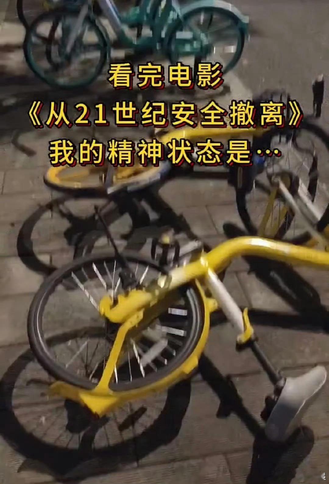 #21世纪抽象人传人现象# 电影《从 21 世纪安全撤离》创造了神奇的一幕,共享单车和二八大杠因为它有了新的“身份”,观众们也都被这种抽象的氛围感染,太有意思啦!