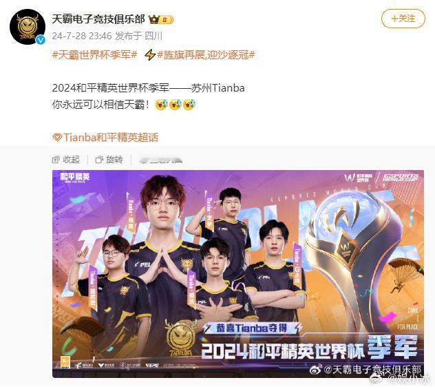 #天霸世界杯季军# 天霸战队一直都在不断的前行,今天我们相聚在这里当然要恭喜一下他们获得了季军,而他们更是带给了我们无比精彩的比赛!