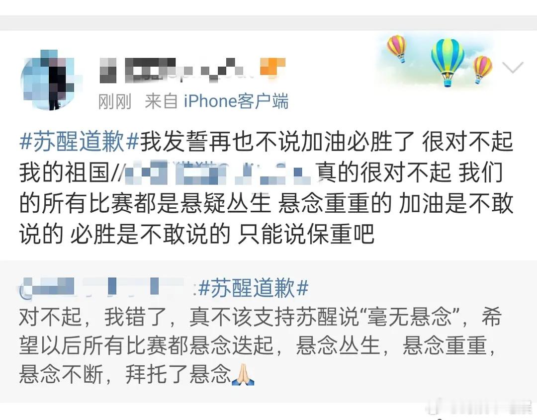 苏醒和他粉丝这是在干什么?破防拿运动员开玩笑,自导自演蹭完道歉,网友不买账,大号道歉热搜是要买的,本人在小号节奏是要带的,做错了还非要阴阳怪气