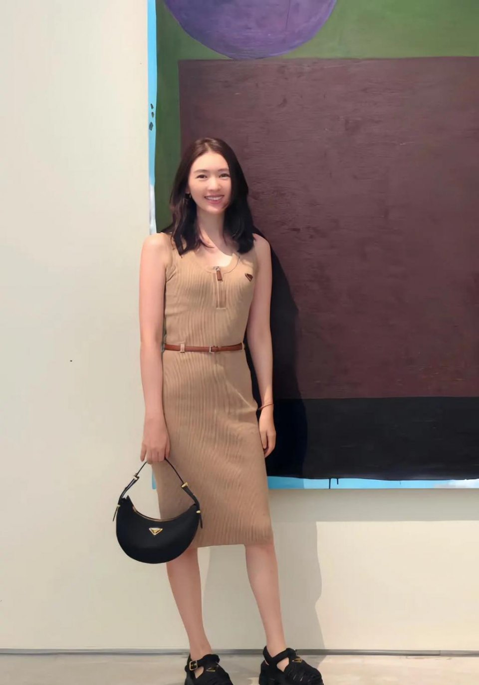 张天爱跟素人合影,胯真的好宽,大宅院似的