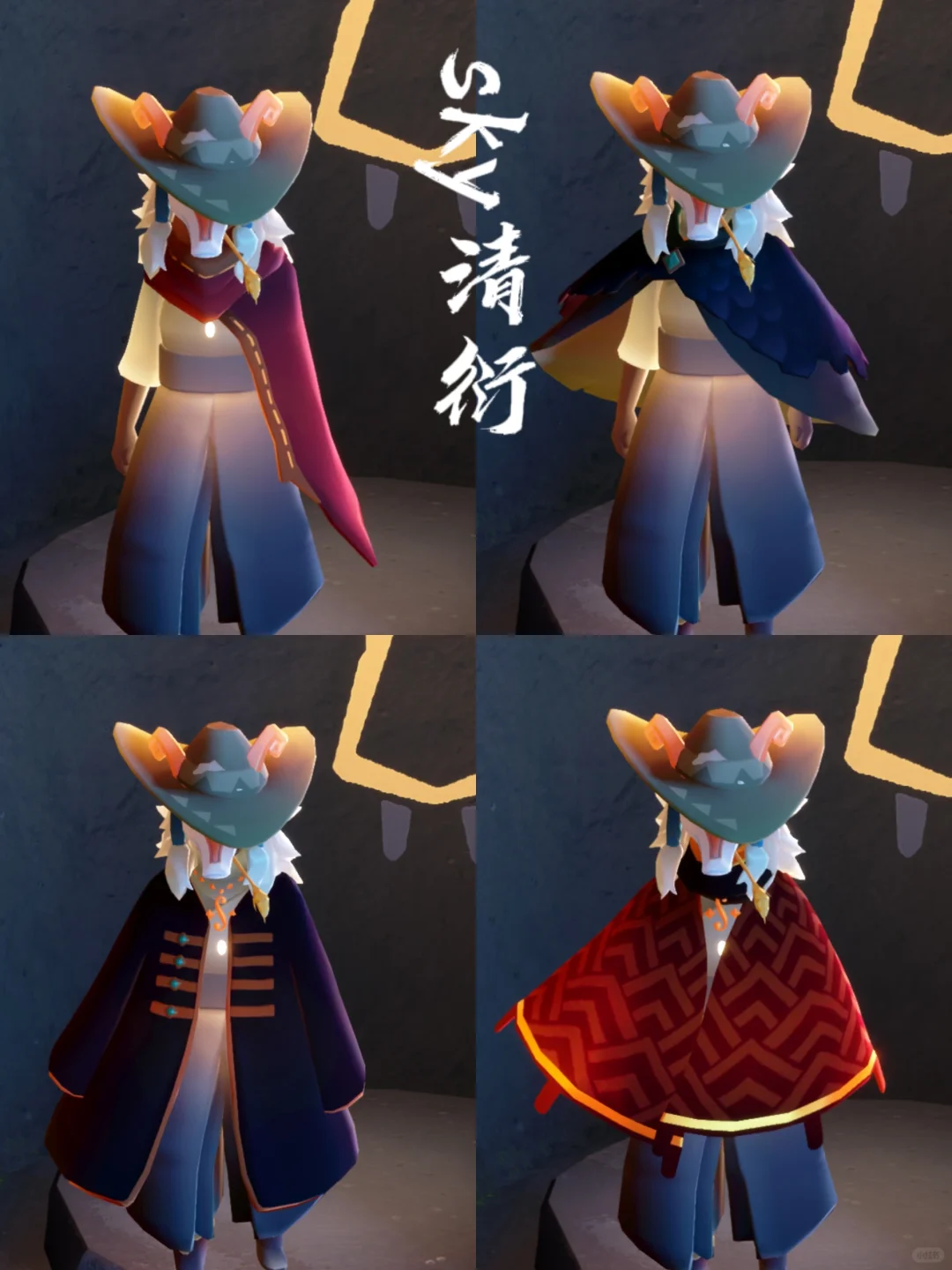 帽子斗篷和嘴里叼的麦穗都是拾光季护林员的,之后会复刻 发型是风行季修补匠的(这个发型和很多兽面都挺搭配的)之前复刻过一次,之后肯定还会复刻 面具就是共鸣季的向导任务树上那个海马面具 这一套搭配各种斗篷都挺帅的,而且都是不同风格的帅!