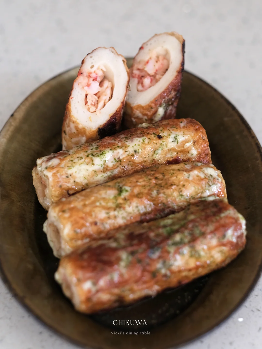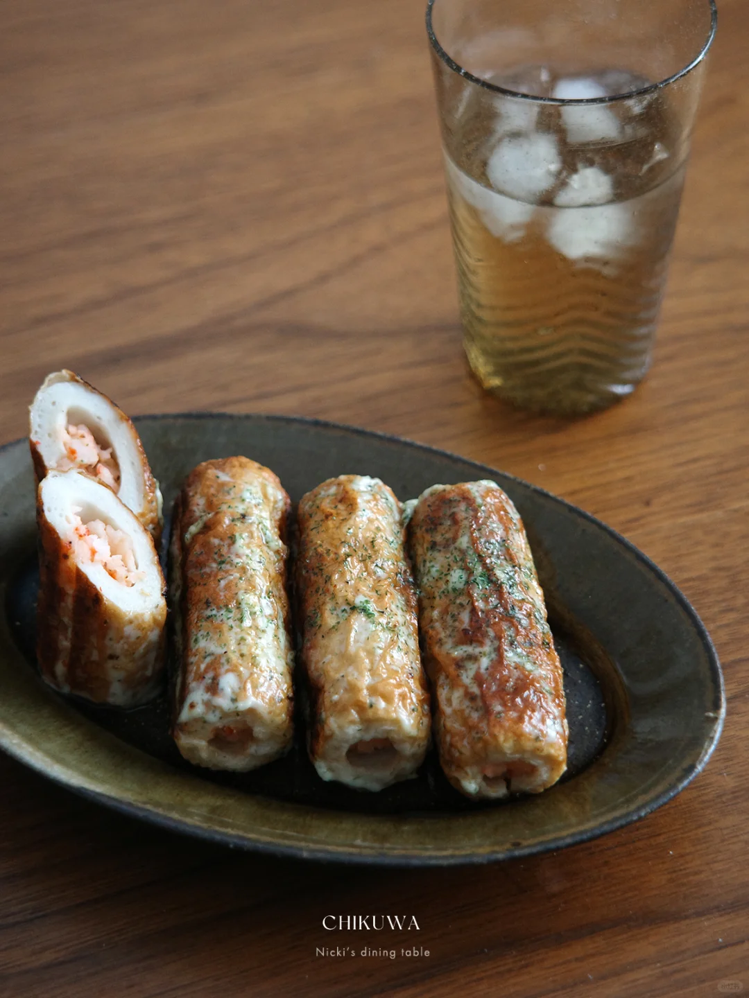 日式料理中会用经常用到竹轮,它是由鱼肉和面粉制作而成。很多居酒屋会将芝士塞入竹轮中,味道是美味的,但闷热的季节,芝士的浓郁奶香些许有些厚重。用虾泥替换掉芝士,口感更鲜甜,也不会腻。