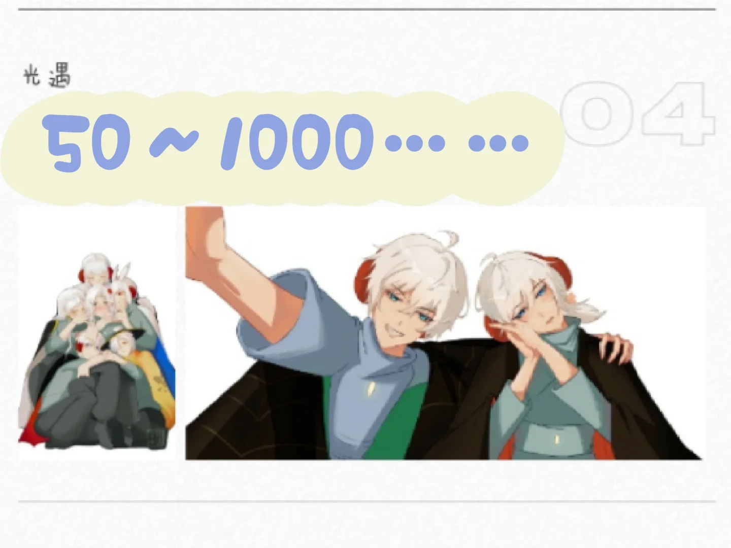 开通了约稿的渠道,目前有🐧和米画师 小企鹅可以随便加,米的话就叫sky清衍 头像半身像和q版小光崽啊一类比较简单的低价小稿可以走企鹅,别去米,因为那个上面定价只能50往上,太贵了 全身像,或者是多人群像之类走米,大稿跑了我得难受死 p2这种有模板的定制小头像10r p3清衍同款定制头像25r p4q版群像一个人15,俩人30,三个及三个以上的每多一位加12 p5以及定制版的《光遇上河图》需要走米画师,超一张票子的都走平台