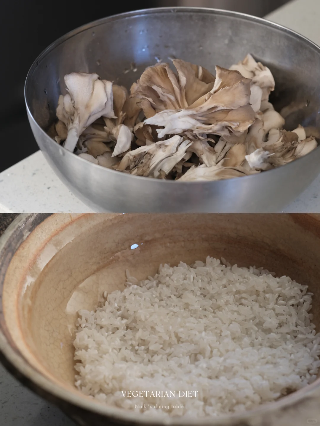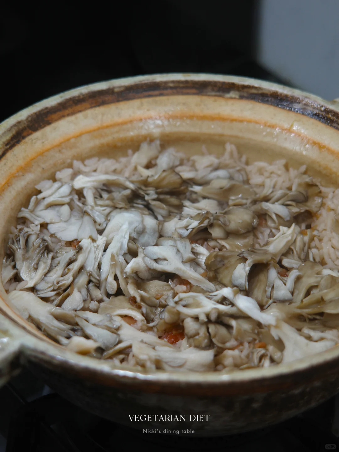•2勺白酱油+一碗水+2勺生抽+1勺味淋+少许盐+梅子泥,搅匀后倒入米中,铺上舞茸菇。