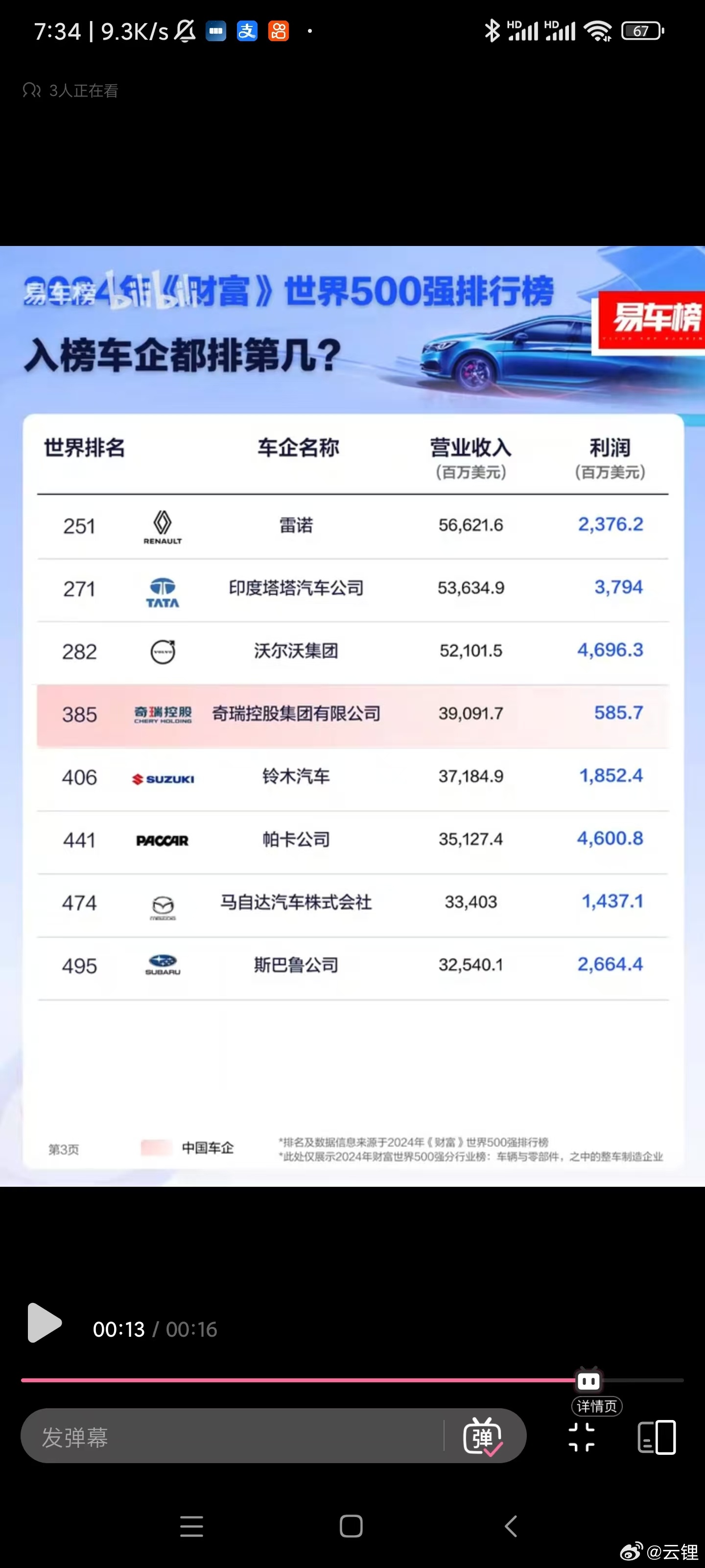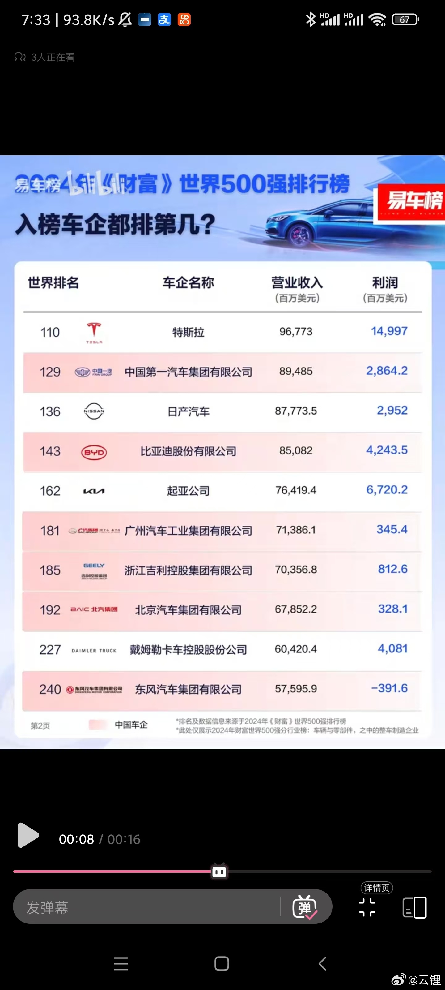 来看下世界500强里面各大车企的最新排名在几个国字辈之后最靠前的是比亚迪和吉利#