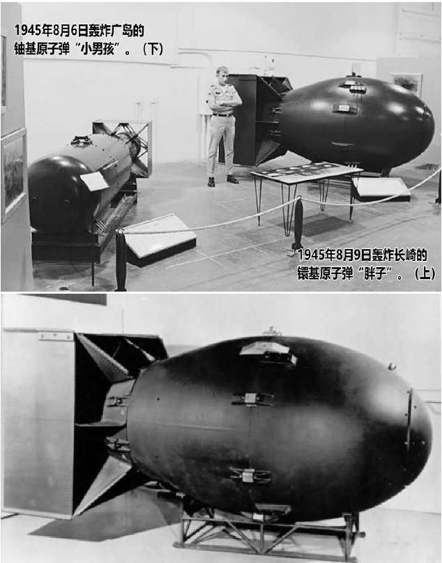图2:“胖子”是一枚钚弹,采用内爆式引爆。所以,与采用枪式引爆的铀弹“小男孩”对比,看上去确实很“胖”。