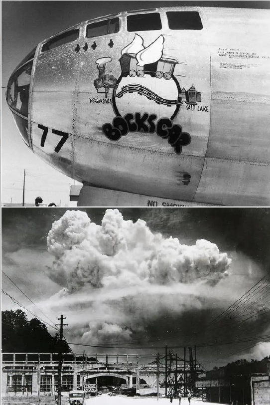 图4,是当天执行投弹任务的B-29“超级空中堡垒”轰炸机,绰号“伯克之车”,飞行员是查理斯·斯文尼。