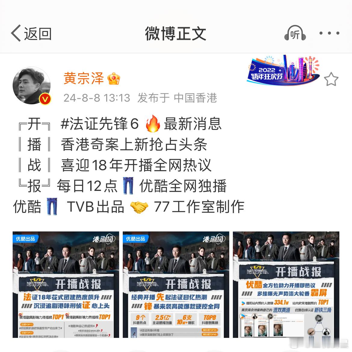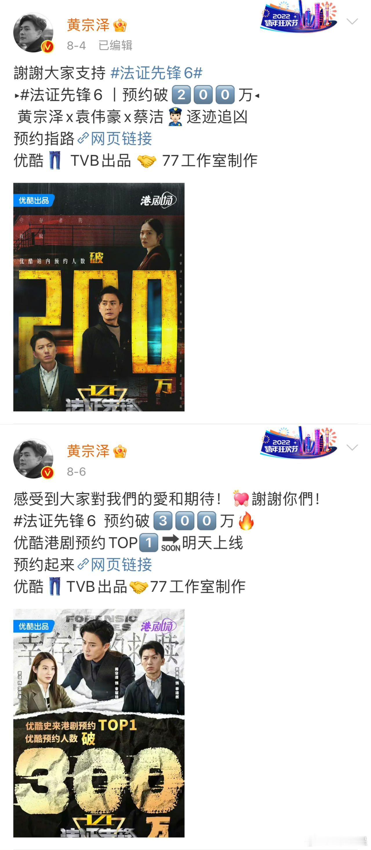 #港星为了剧宣有多拼# 港星在剧宣上真的很用心,像黄宗泽、袁伟豪、蔡洁这样,为了#法证先锋6# 积极宣传,各种物料分享,太值得点赞了!
