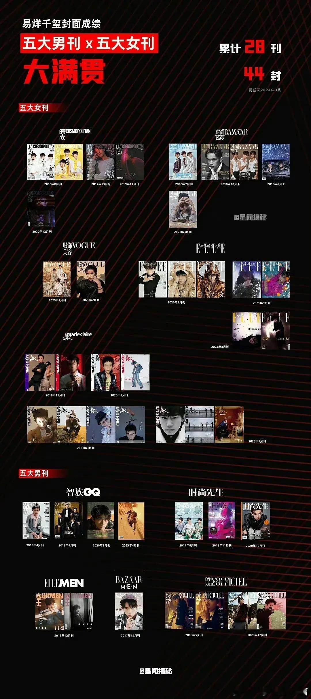 易烊千玺男刊女刊全部集齐,这是杂志最快大满贯吧