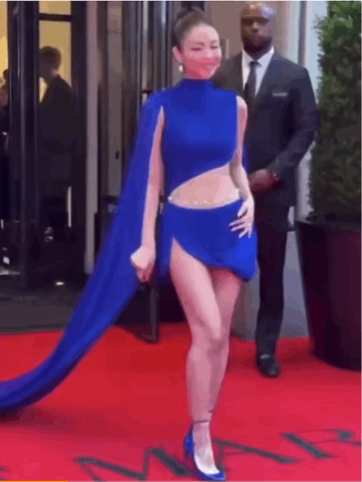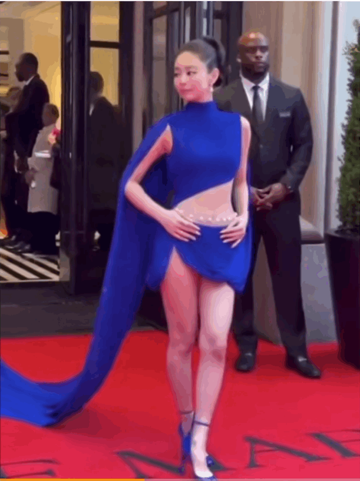 张天爱跟素人合影,胯真的好宽,大宅院似的