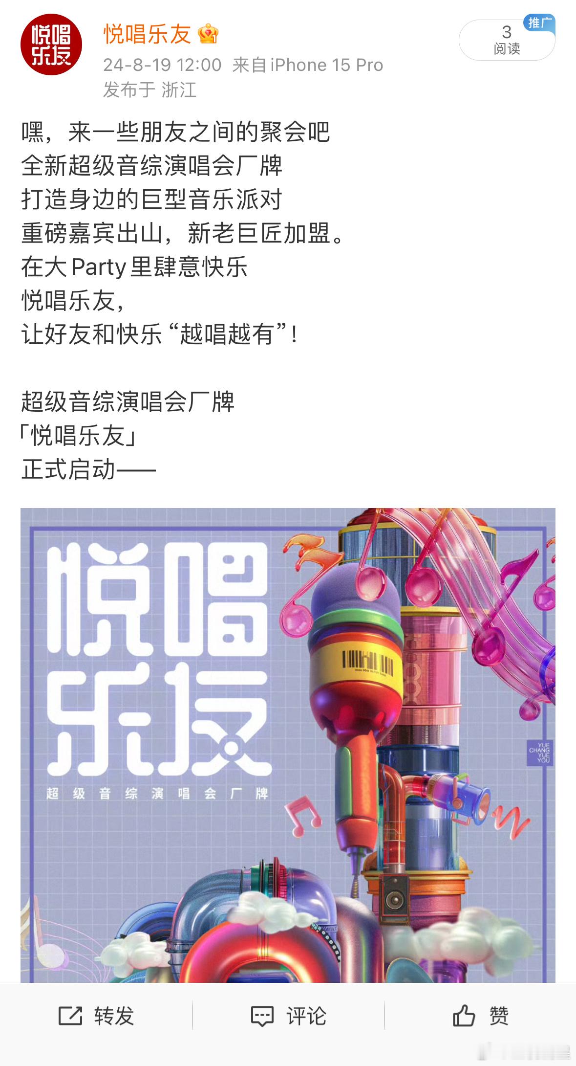 #悦唱乐友超级厂牌# 惊喜来袭!全新演唱会 IP 强势启动,重磅嘉宾出山,新老巨匠加盟,满满的都是期待。让我们锁定官宣阵容,一起感受音乐的魅力!🎼#悦唱乐友演唱会IP官宣#
