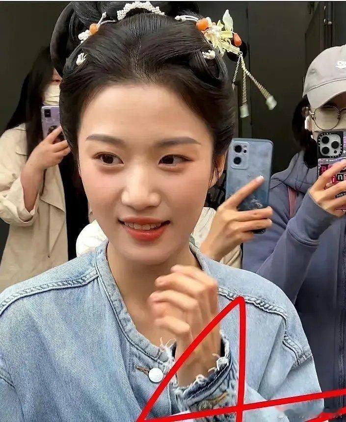 张天爱跟素人合影,胯真的好宽,大宅院似的