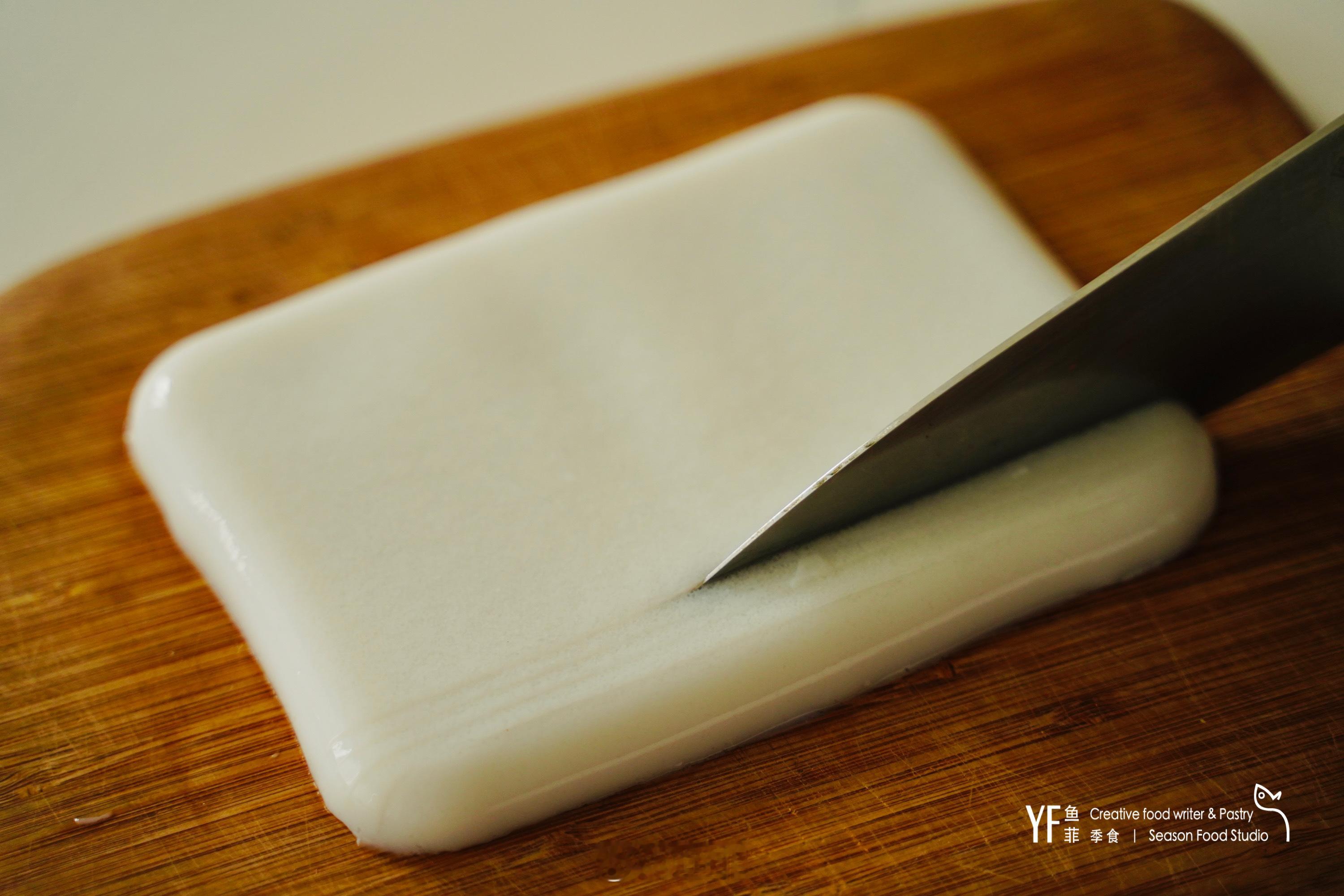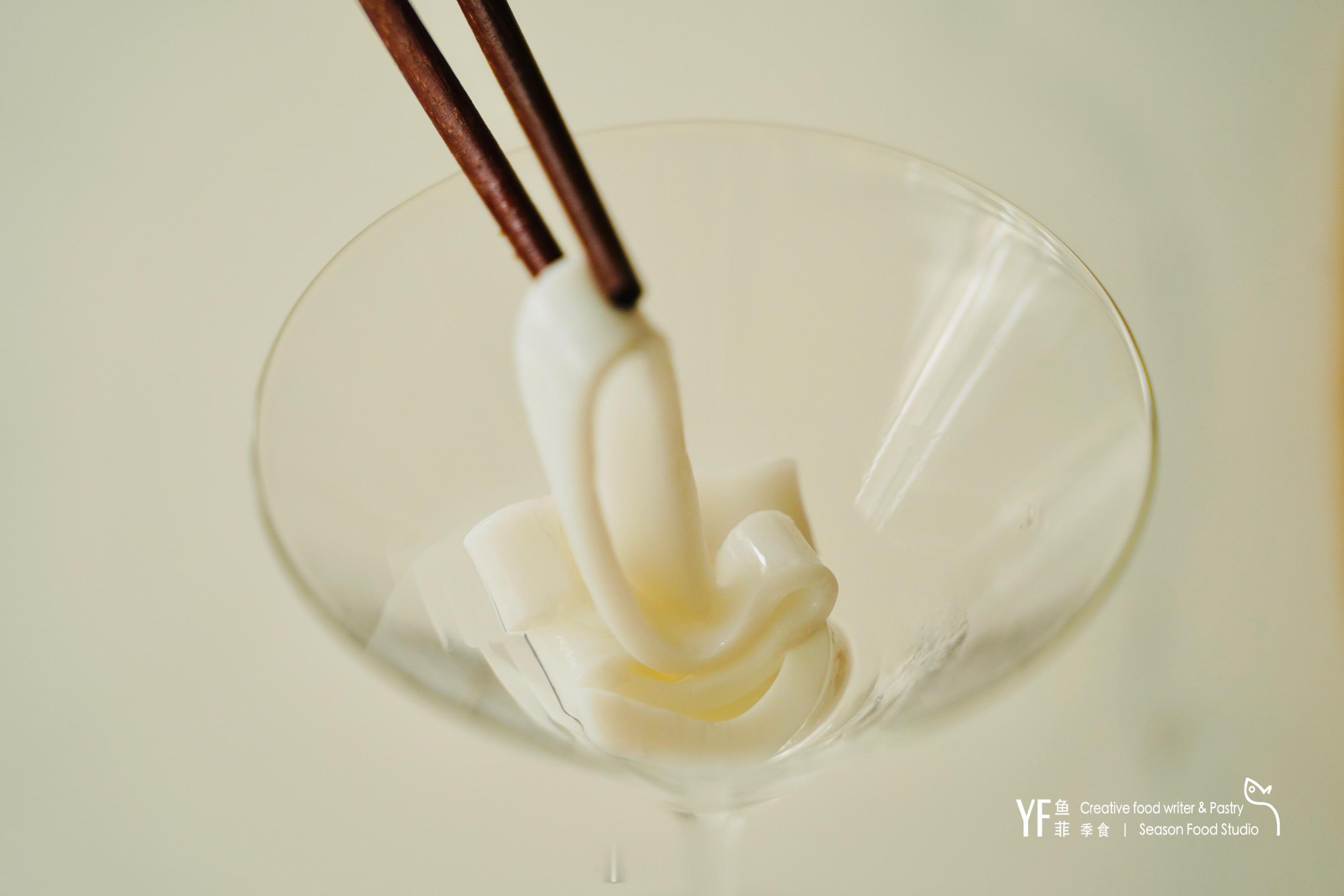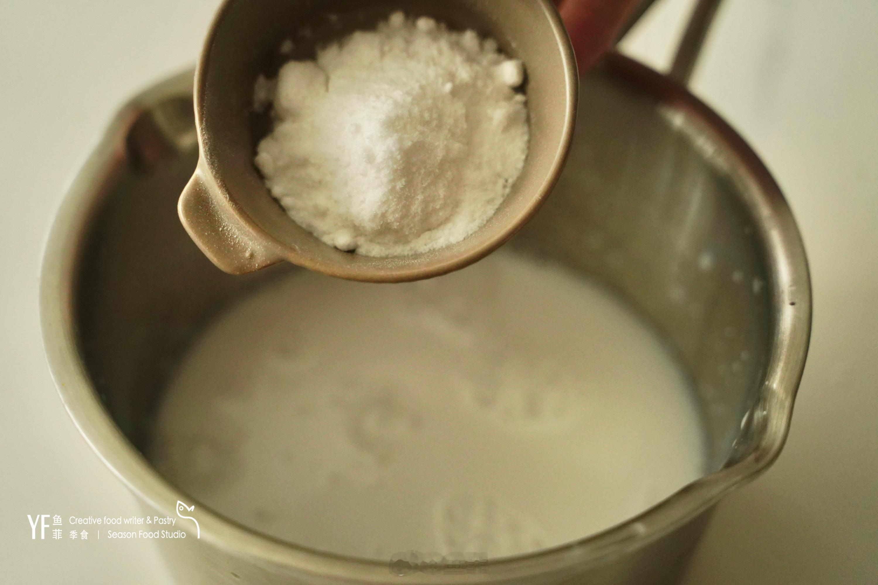 1、椰奶倒入锅中,煮沸后加入白凉粉混合搅拌均匀,再次煮沸后离火,倒入容器中等待凝固