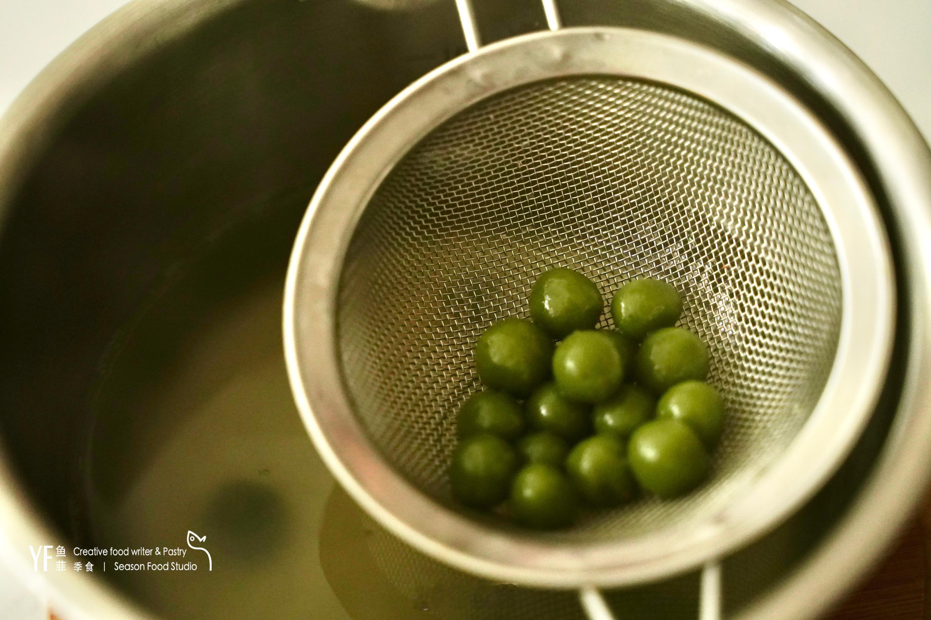 2、沸水下入小圆子,煮至浮起后捞出放入冰水中备用