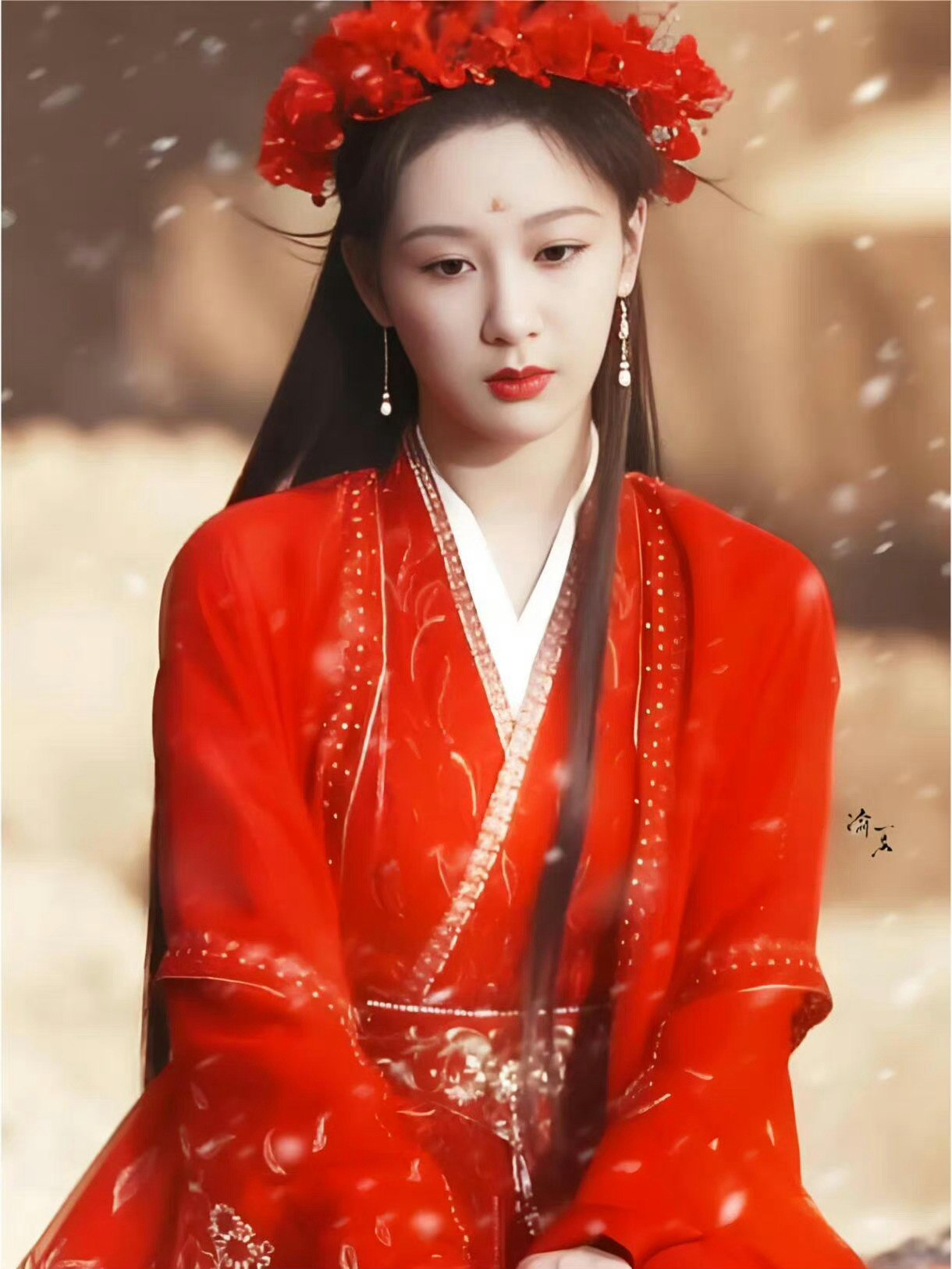 杨紫的红衣造型虽然比白鹿华丽,但是感觉却输了呀