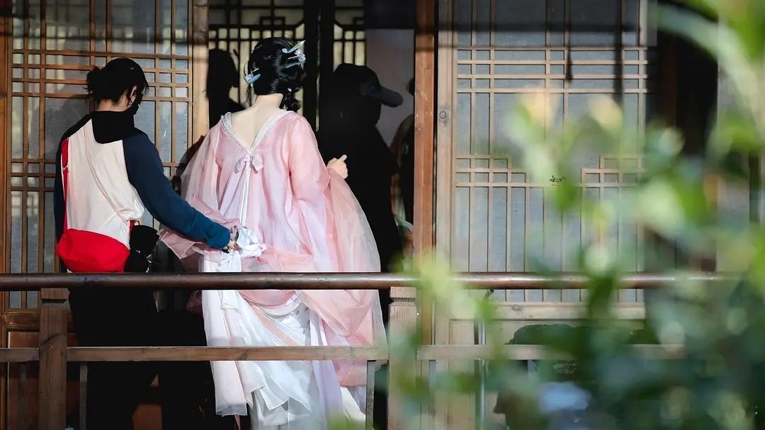 张天爱跟素人合影,胯真的好宽,大宅院似的