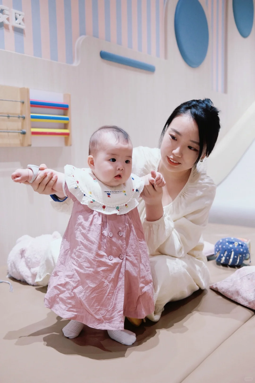 趁着一岁前赶紧去薅羊毛 奈尔宝可以一大一小免费玩 提前在小程序上预约到店 然后到店出示出生证或者医保卡就可以 注意家长要穿防滑袜子哦 如果没有也可以现场买 不用担心宝宝没地方玩 因为本身就有一个小月龄区域 在这可以见到很多和他一样大的小朋友 所以小朋友本身也会很兴奋 在别的区域里都是至少2岁的孩子了 我家娃见到比自己大的哥哥姐姐也会很开心的 一直在咿咿呀呀的笑,很难得看到她这样 下次再去打卡meland感受一下[偷笑R]