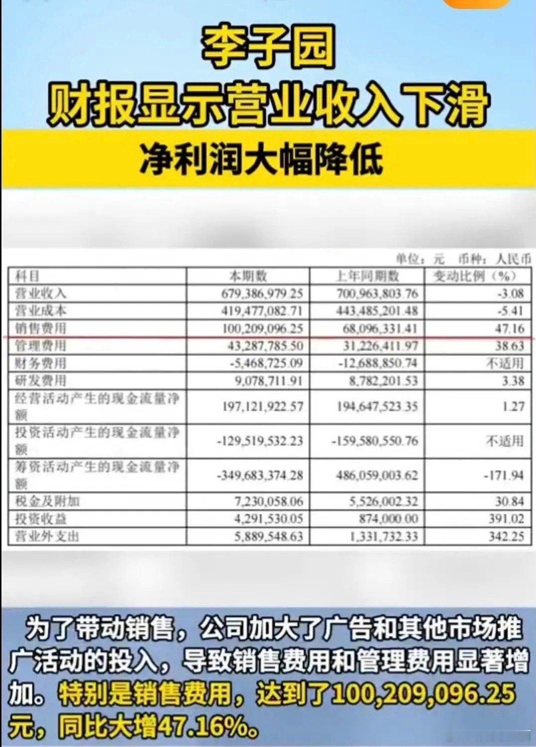 成毅是李子园的代言人吧,净利润大幅度降低,但好像是四月份代言的,关系大吗?