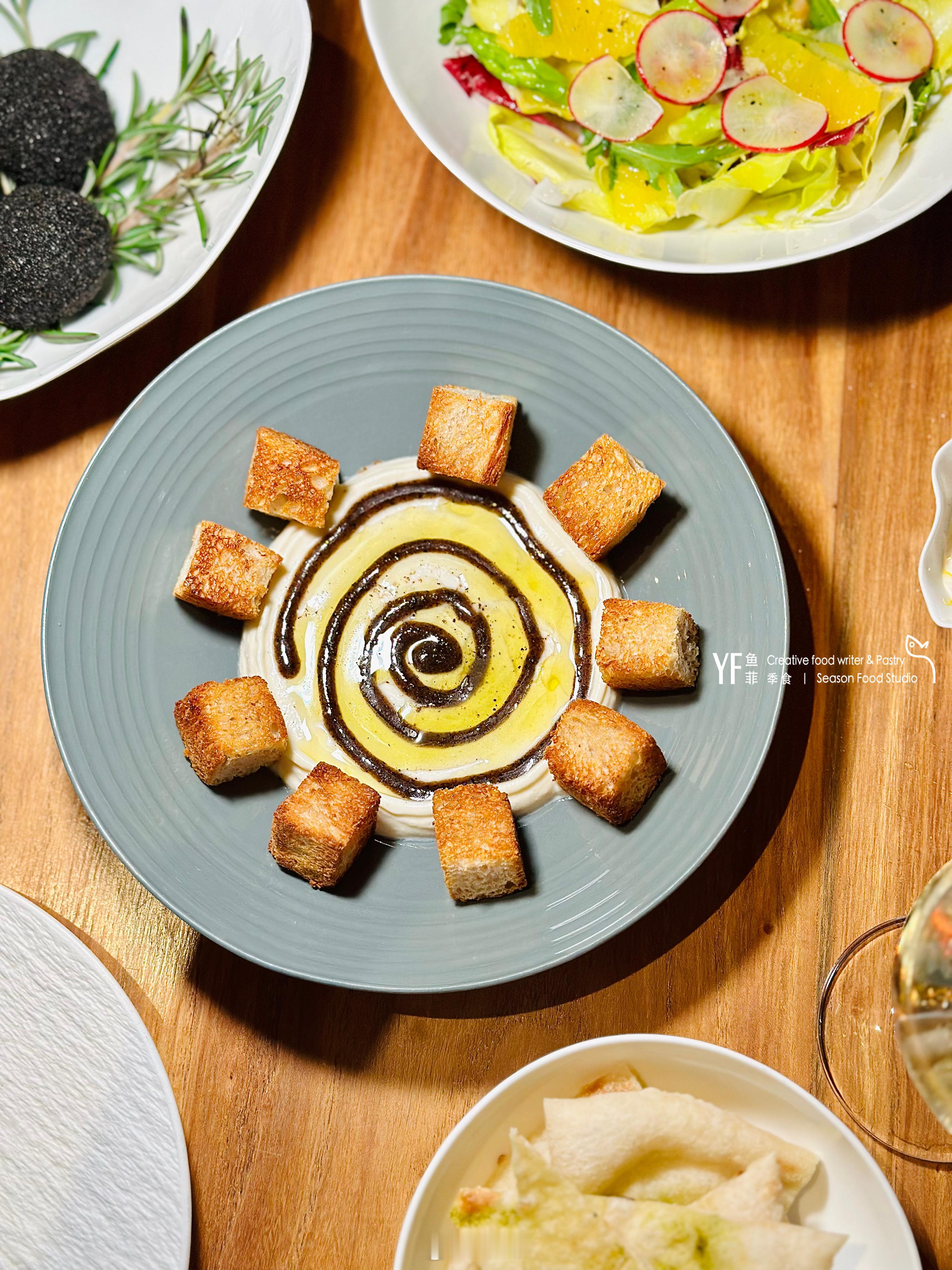 开胃菜里的新鲜乳清芝士,那种霸道的黑松露香气融合于橄榄油之中,入口丝滑浓郁,薄饼佐味,有种醇厚的奶香味,让人不自觉的一口接一口。牛肉塔塔做的也很特别,表面一层厚厚的芝士碎,下面是牛肉,不仅有比较嫩口的,还有比较酥脆的口感,很有特色。