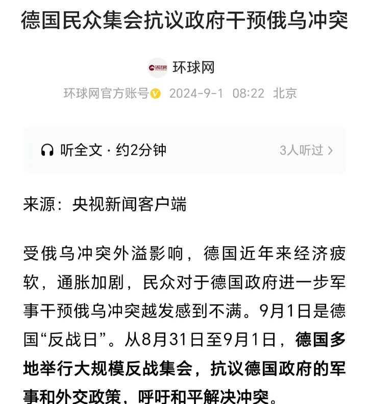 德国总理朔尔茨焦头烂额! 针对援助乌克兰,德国多地爆发大规模反战游行。 有分析认为,事实上,这种情况,也是德国民众觉醒以后的一系列行动之一。两年多的俄乌战争,让德国民众陷入了深深的痛苦之是。不但北溪天然气管道被炸,而且德国还要支持乌克兰并制裁俄罗斯,所以德国失去了来自俄罗斯的价格低廉的能源,这种情况下,德国制造业受到严重打击。 经济下滑,德国民众收入降低,在这种情况下,德国还要拿出大量资金援助乌克兰。这让德国民众已经无法忍受了。 所以,德国朔尔茨政府现在也是非常难办。