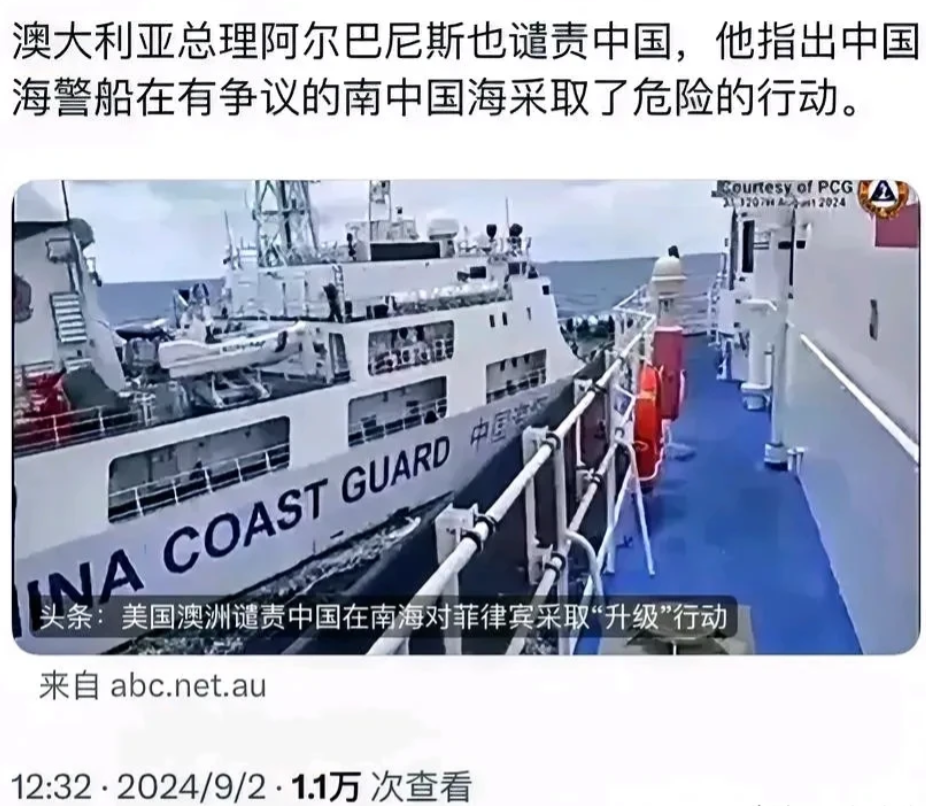 令人气愤!澳大利亚表态了! 澳媒称,澳大利亚总理阿尔巴尼斯谴责中国,因中国海警船在南海采取了危险行动。 有评论表示,事实上,澳大利亚这样的表态,属实令人感到不可思议。这说明澳大利亚跟随美国的旨意,也开始急眼了,出来叫嚷了。但这样的情况,对于澳大利亚来说,属实是睁眼说瞎话。今年以来,菲律宾在美国的支持和怂恿下,不断在南海拱火闹事,侵犯中国主权。在这种情况下 ,澳大利亚还不分青红皂白,出来指责,还有公正吗?还真把自己当回事了? 有分析认为,美国现在为了遏制,不惜拉拢一帮小弟出来兴风作浪,但最终都无济于事。