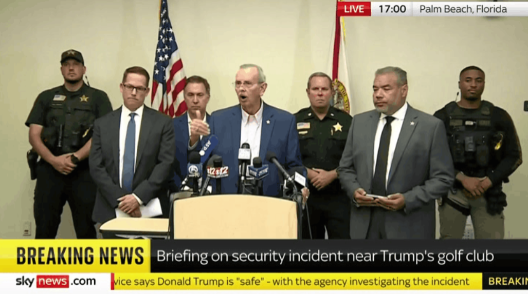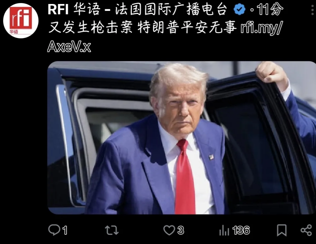 实锤了❗刺杀特朗普未遂—美国棕榈滩县警察局新闻发布会上宣布,9月15日在佛罗里达州高尔夫球场枪击案场附近发现一支AK-47步枪。据初步调查,美国特勤局特工率先发现躲藏在灌木丛中嫌疑人并向他开第一枪。 枪击现场距离特朗普打球仅有300至500码。这是特朗普短短两月来第二次遭遇暗杀袭击。