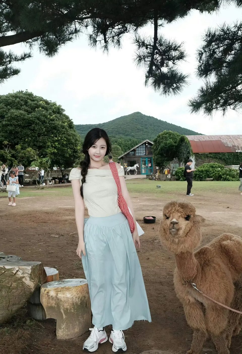 张天爱跟素人合影,胯真的好宽,大宅院似的